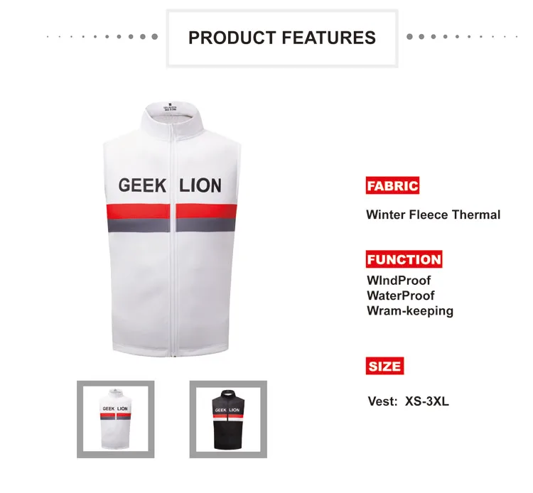Geeklion Men's Cycling Winter Fleece Thermal Warm-Keeping Vest Sleeveless Windproof Bike Jackets Cyclist Waterproof Wear