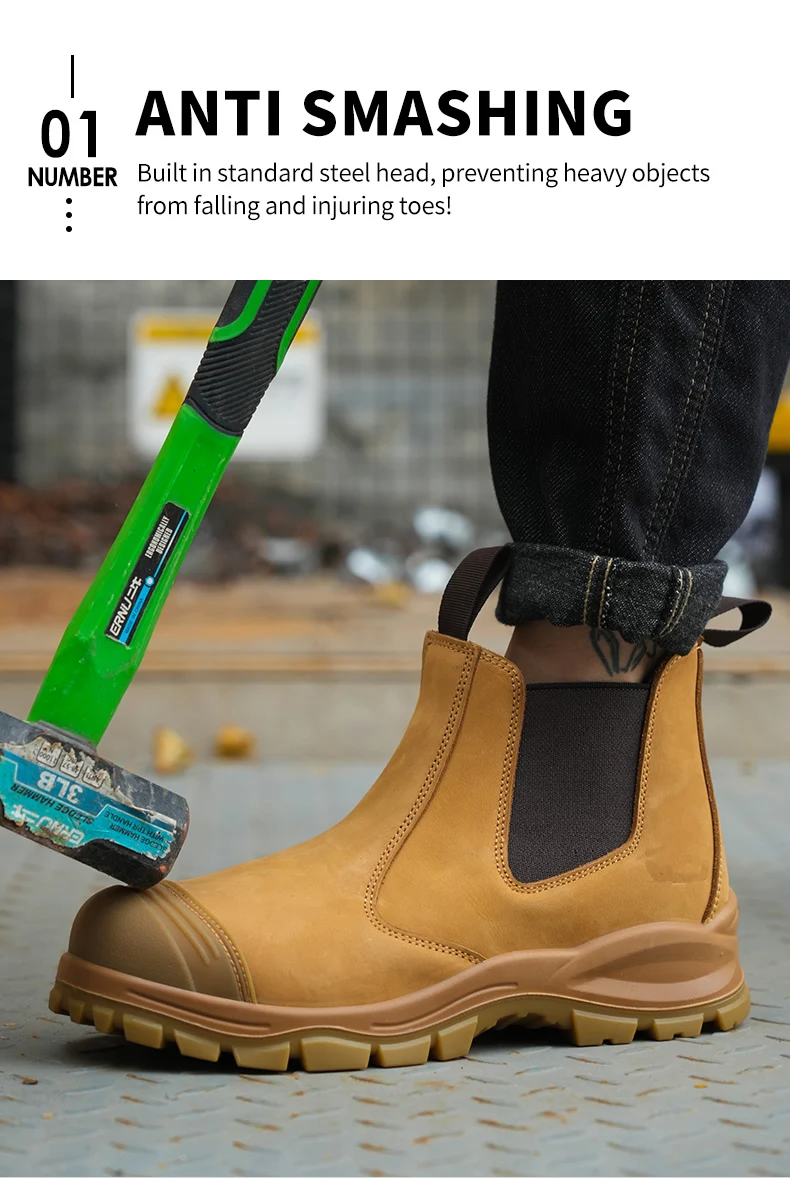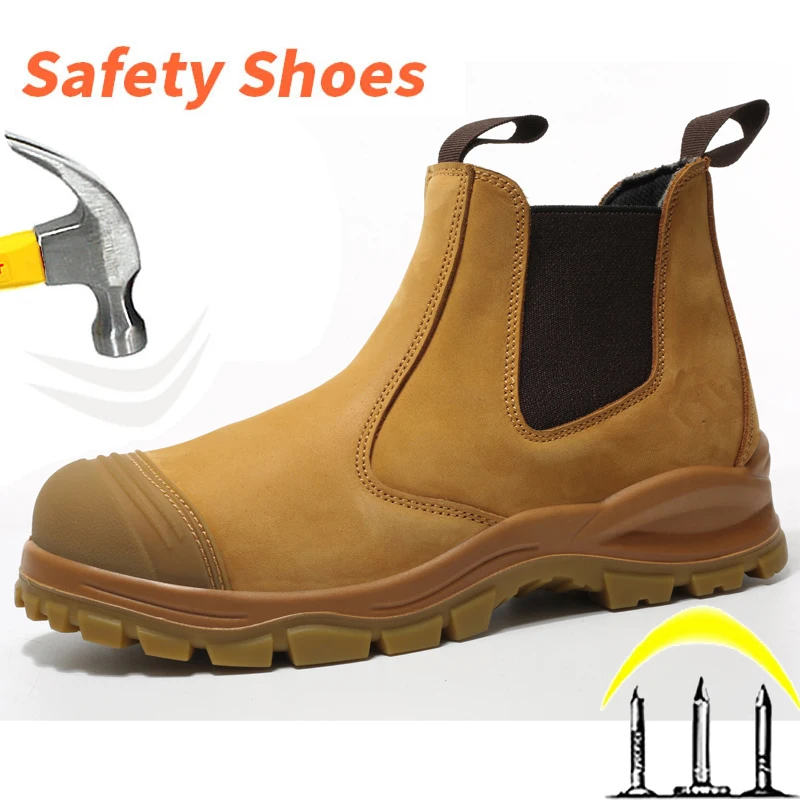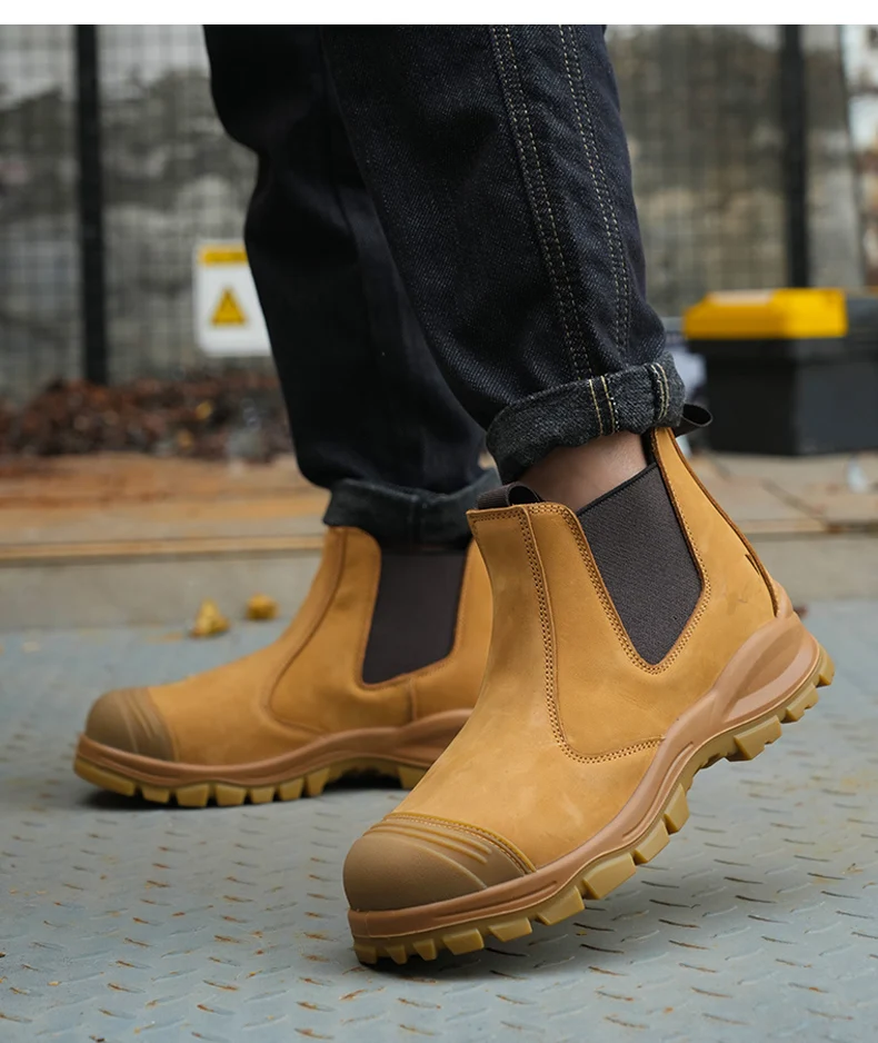 Genuine Leather Work Safety Boots For Chelsea Boots Men Shoes steel toe cap Protective Boots Cowhide Indestructible welding