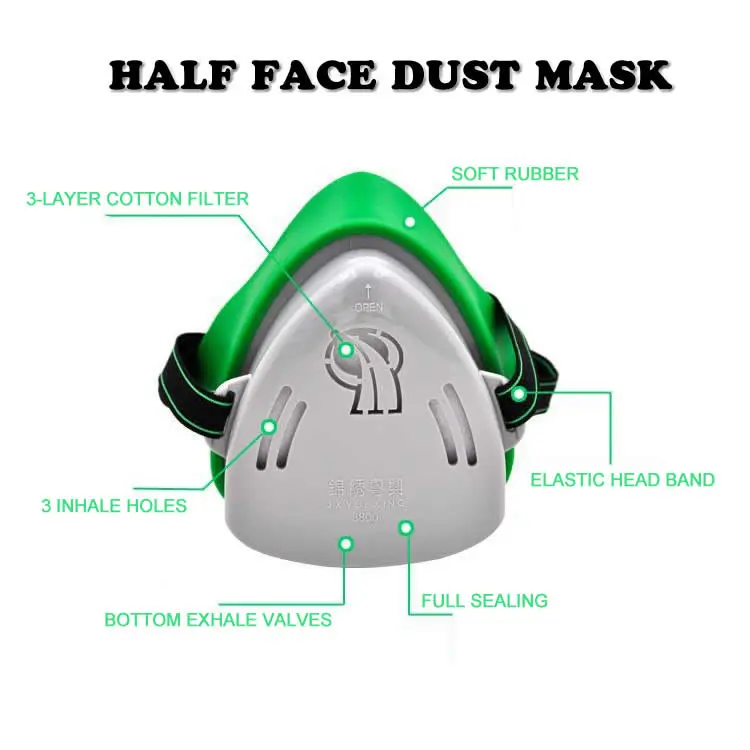 Half Face Professional Dust Mask Dust Proof Respirator Rubber Work Safety Mask For Builder Carpenter Daily Clean Haze Protection