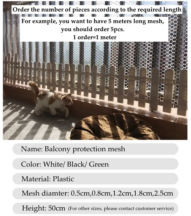 Height 30/50cm Length 1m Balcony Protection Mesh Pets Kids Anti-Fall Network Stairs DIY Protection Fence Plastic Net Cat Safety