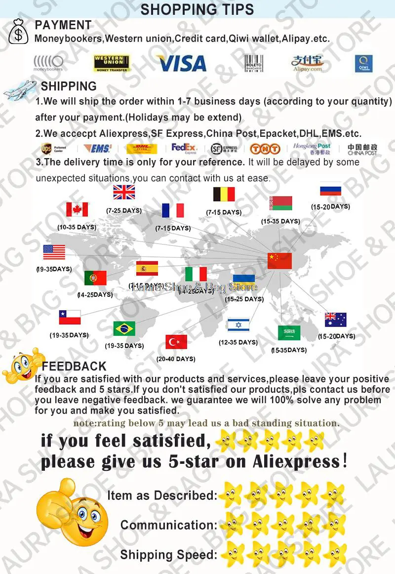 Wish you have a nice shopping experience and give us good feedback after you get the shoes, if you have any question about the shoes, please kindly contact with us at first, we will help you to solve the problem at once.