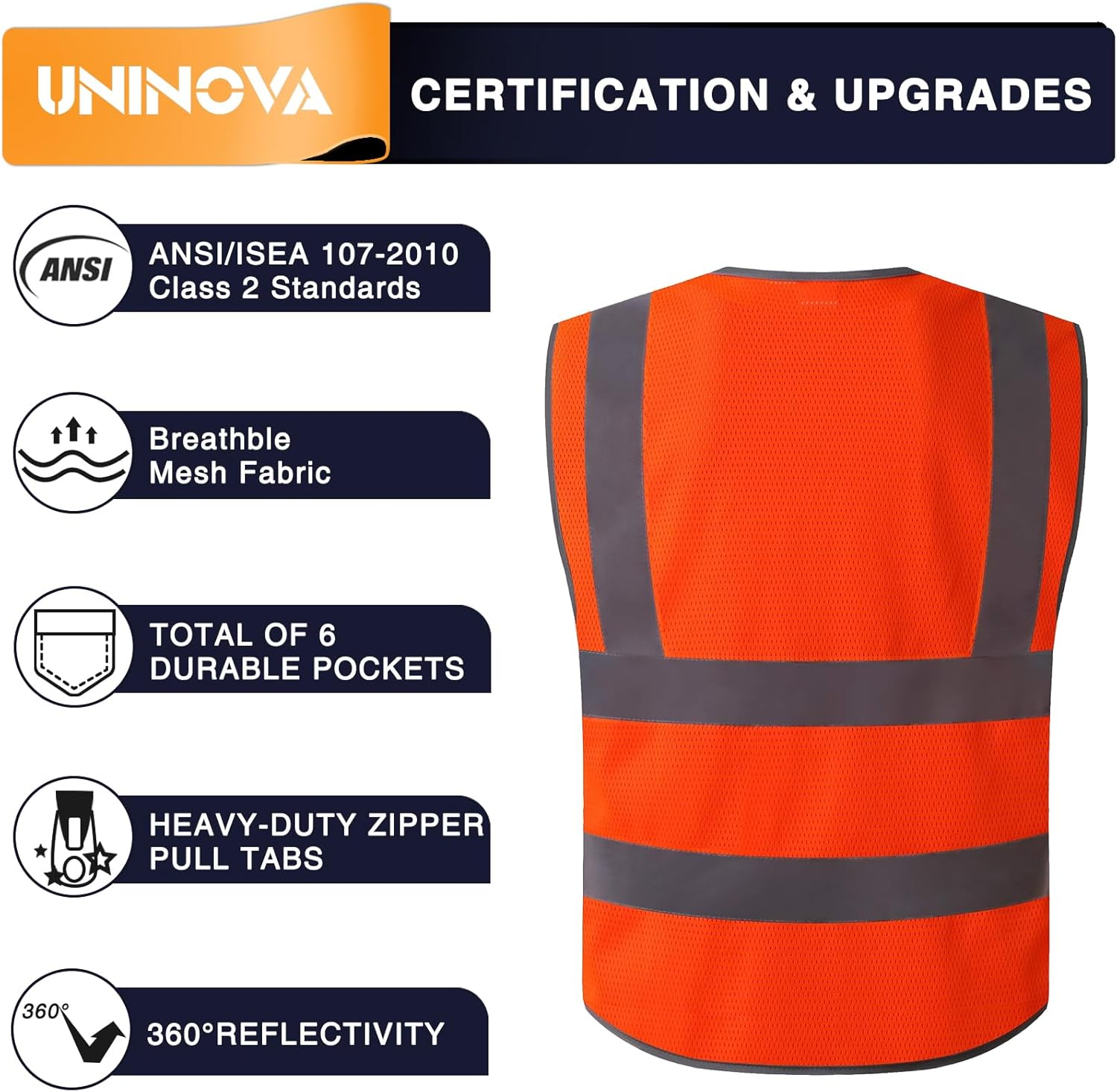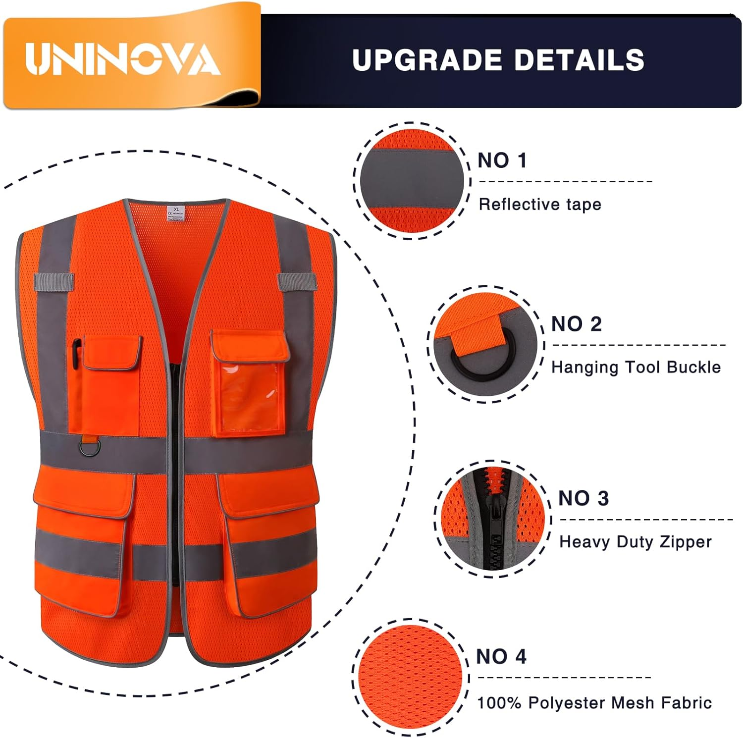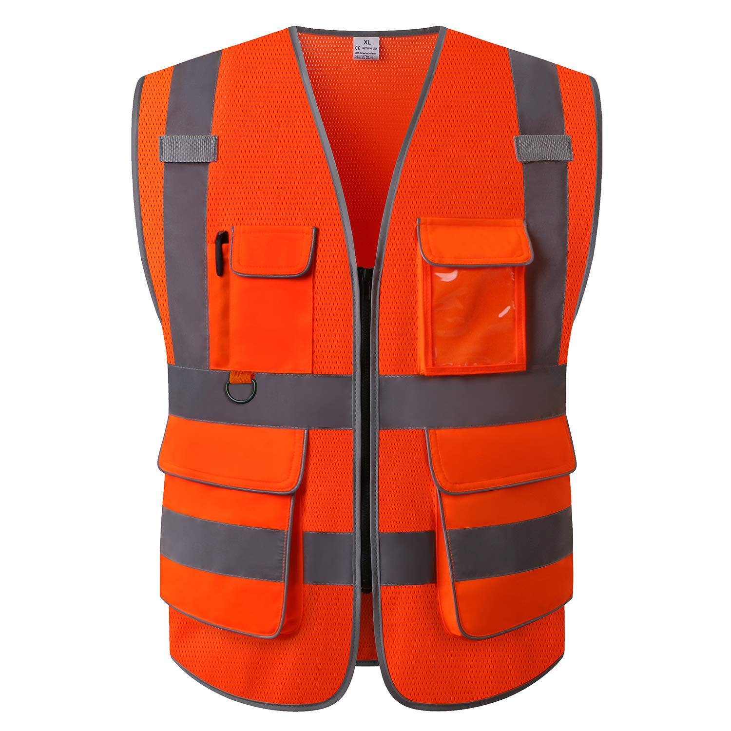 High Visibility Safety Vest – Multi Pockets Reflective Mesh Breathable Workwear, ANSI/ISEA Standards ( Orange Mesh)