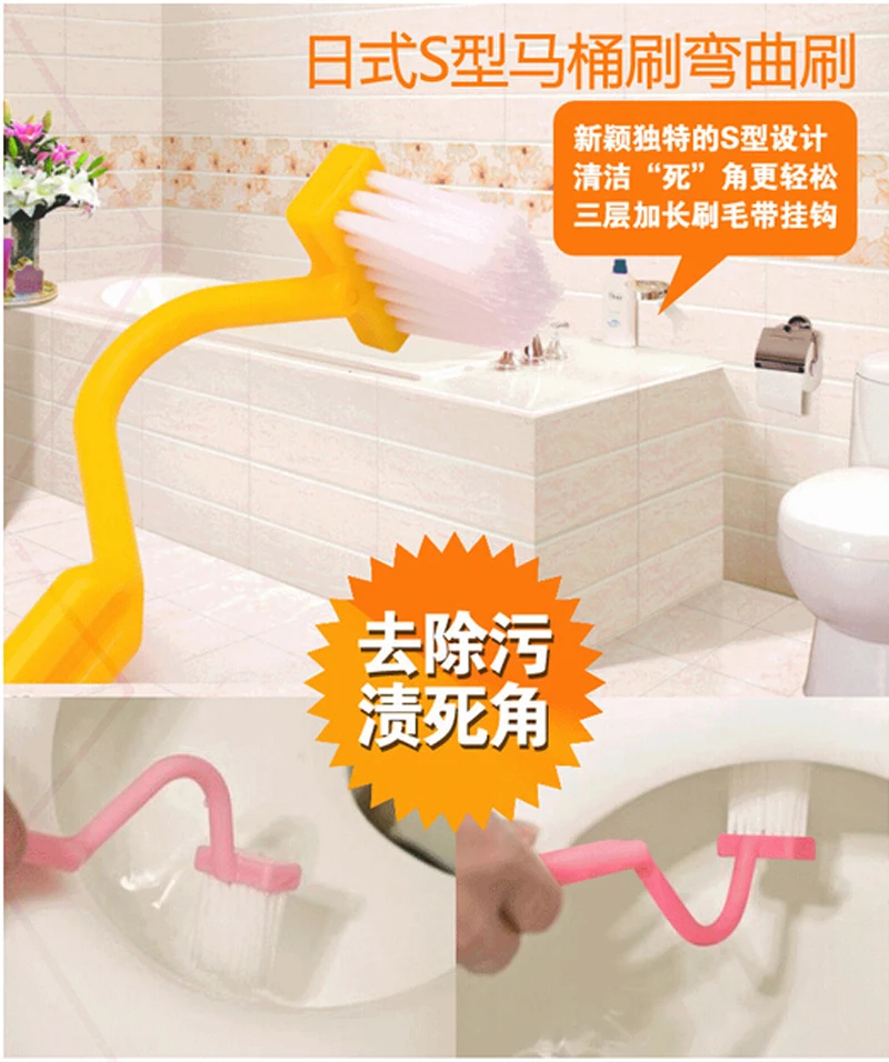 Hot Useful Curved Small Bathroom Kitchen Toilet Cleaning Brush Corner Rim Cleaner Bent Bowl Handle Home Cleaning Accessories