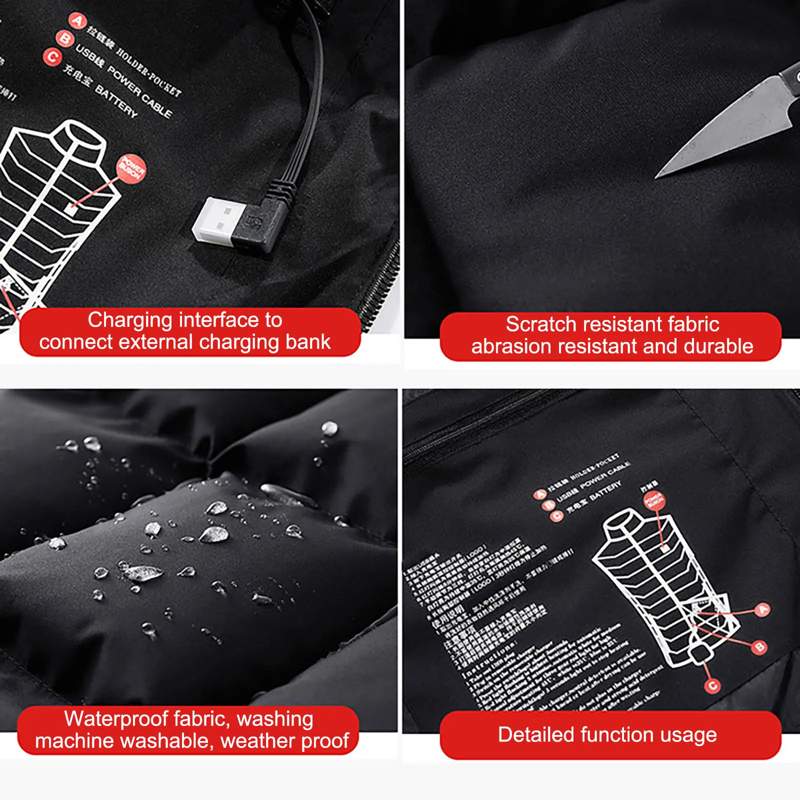 1Waterproof, , warm, breathable, wear-resistant, ultra-light, , acid-proof.