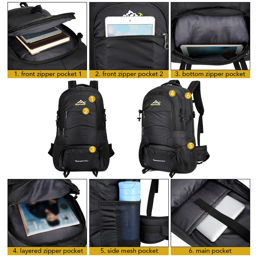 Waterproof, tear resistant and durable backpack with large capacity, is very suitable for outdoor activities such as trekking, hiking, camping, climbing etc.