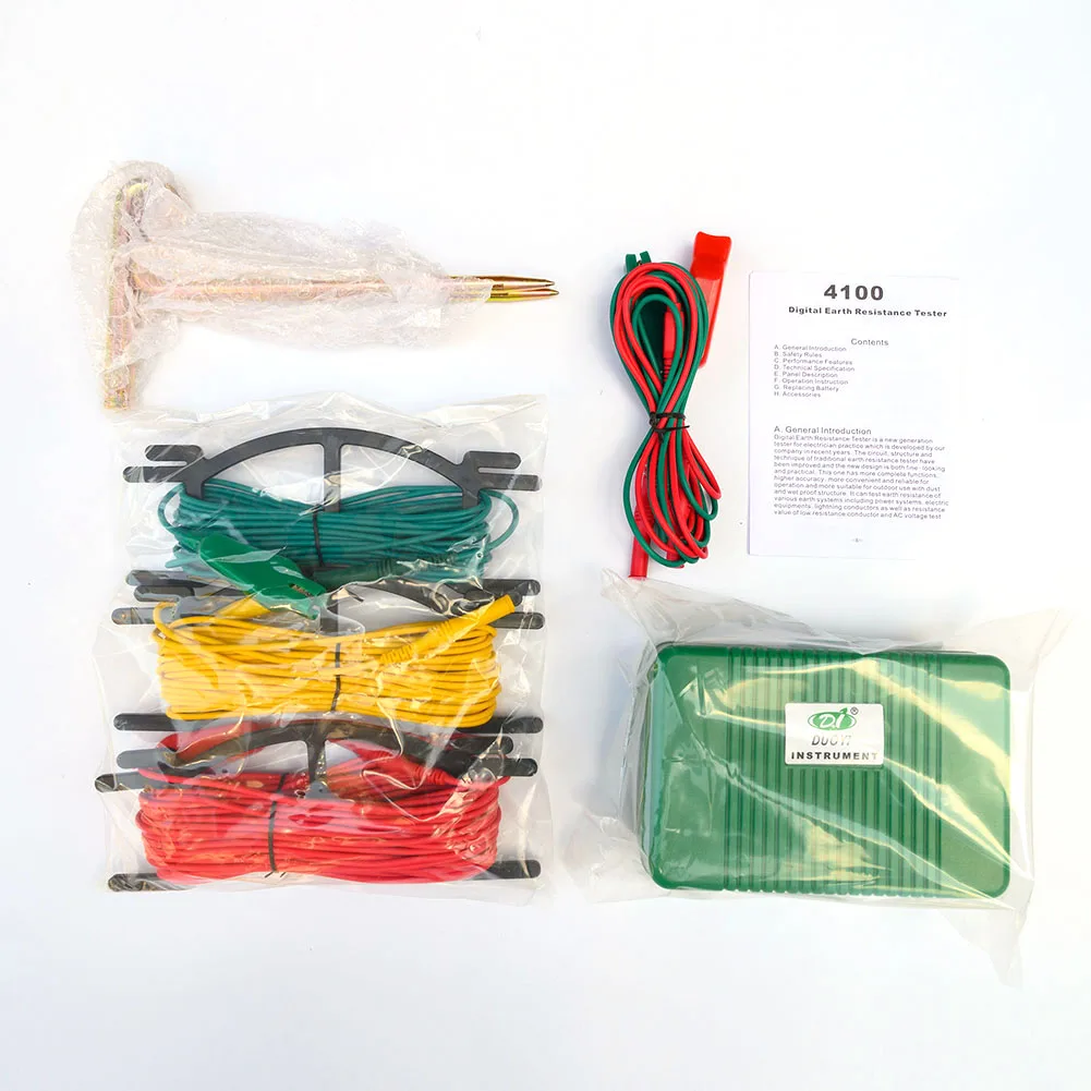 1 X Instruction 1 X Storage Bag 2 X Auxiliary Ground Rod 3 X Test Line (Red 5 meters, Yellow 10 meters, Green 5 meters) 2 X Simple test line (Red and Green 1.6 meters)