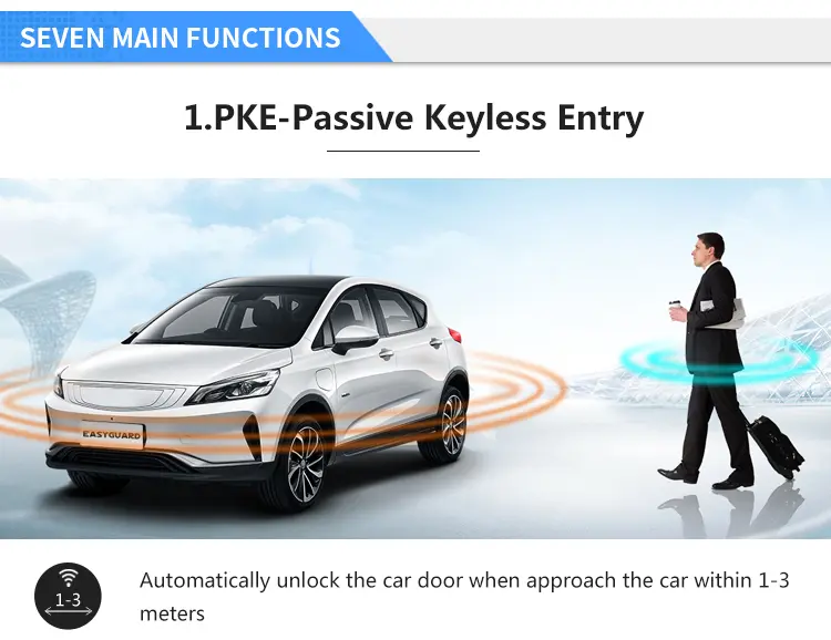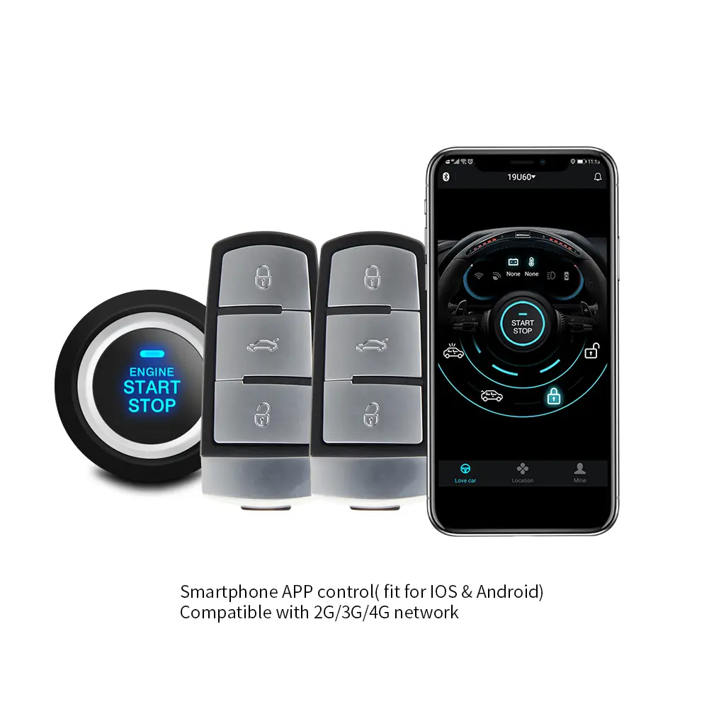 This is EASYGUARD PKE car alarm system with GPS tracking, passive keyless entry, remote start, push start, touch password entry. This item can be controlled by IOS & Android smartphone.