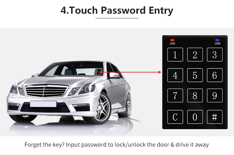 Touch password entry: Input password to lock/unlock the door and drive it away.
