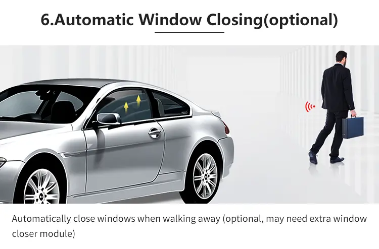 13. Automatic window closing (optional, extra window closer module may be required, like 4 door window closer, please see