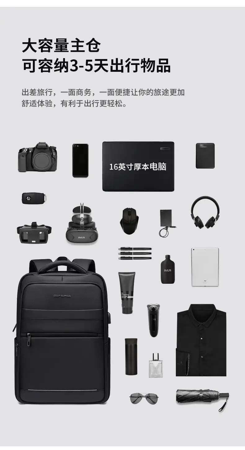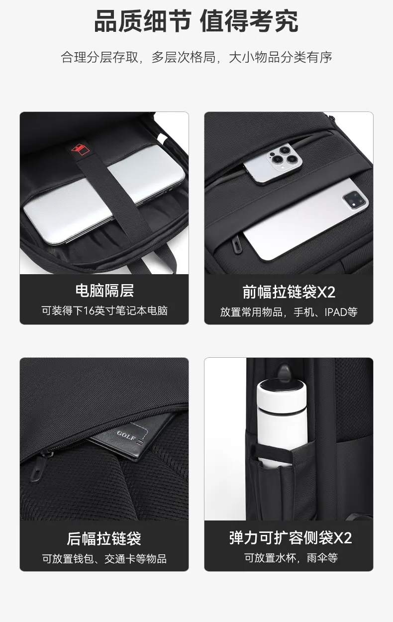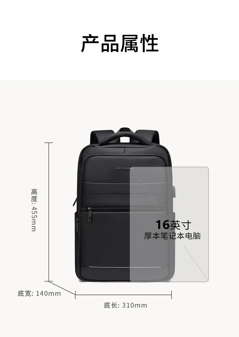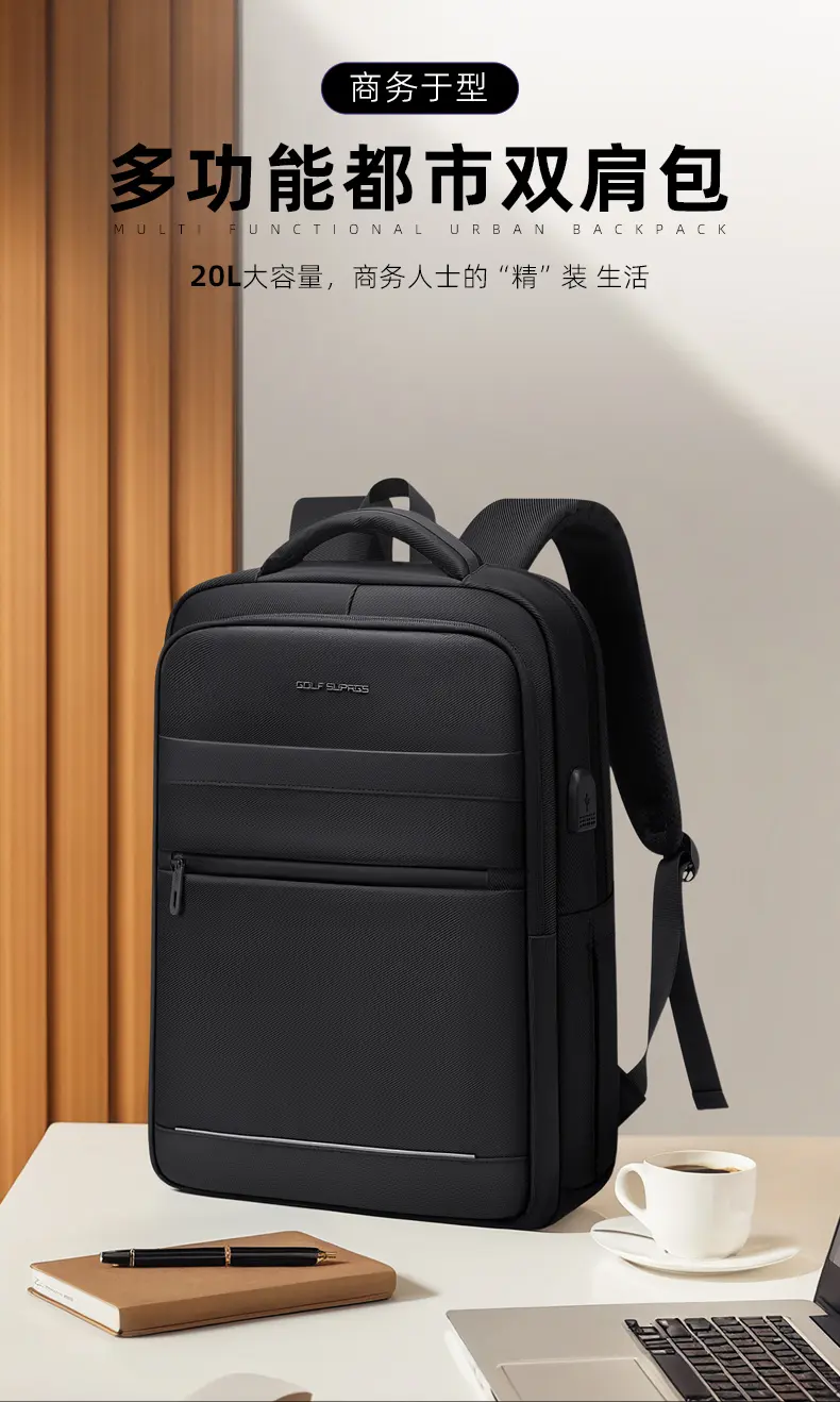 GOLF Business Backpack Men Shockproof Laptop Bag 16 inches Waterproof Multiple Compartment Backpack Slim Black Office Back PackCNY 150.88/piece