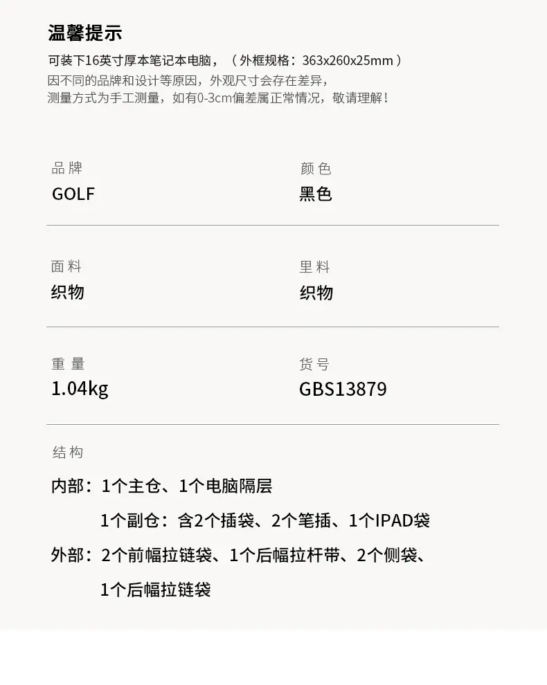 GOLF Men’s Backpack Large Capacity Business Oxford Cloth Computer Bag Leisure Business Travel Bag Student Book Bag TrendCNY 117.65/pieceIf you have any questions, please feel free to contact us at any time. thank you!