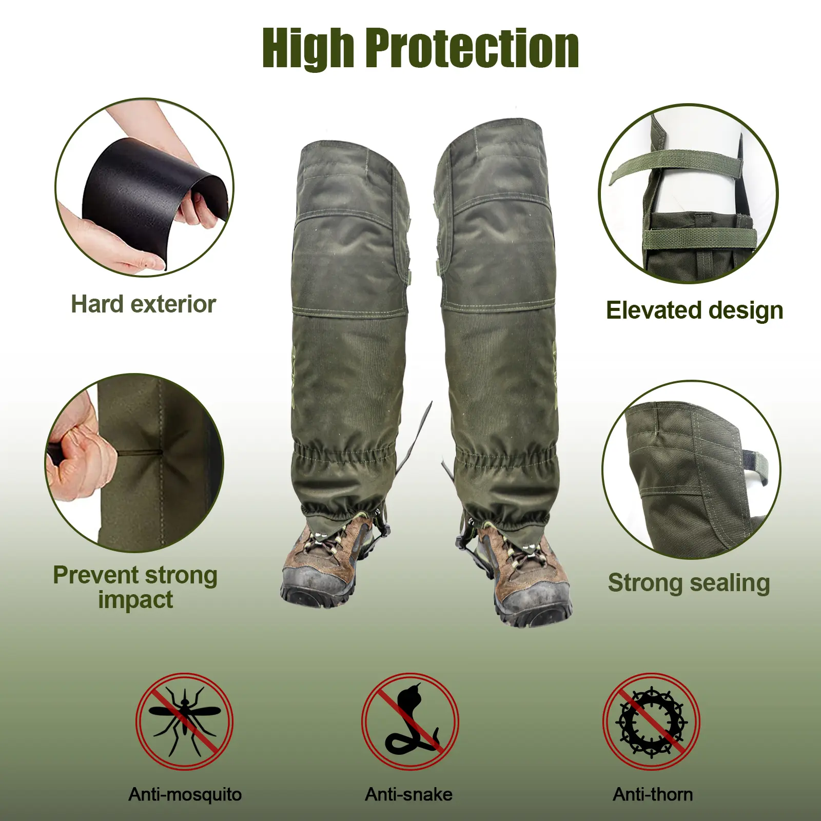 【High Quality】: The BZTAC Tactical Hunting Gaiters are made of ultralight, waterproof, breathable, tear-resistant, and puncture-resistant polyester ripstop material for maximum breathability and durability. The strong rubber under bootstrap belt is designed for long-term use, while the high gaiters provide total protection when walking through rough terrain.
