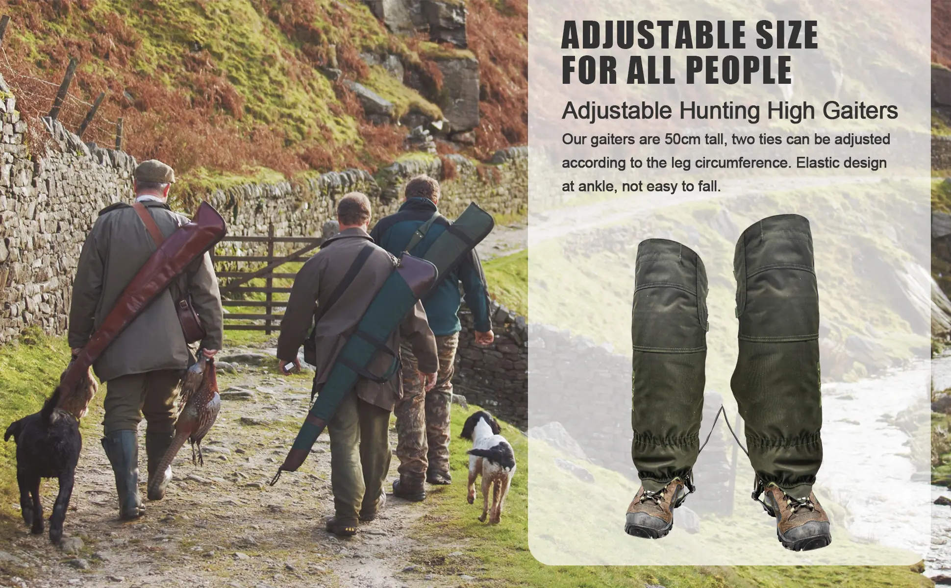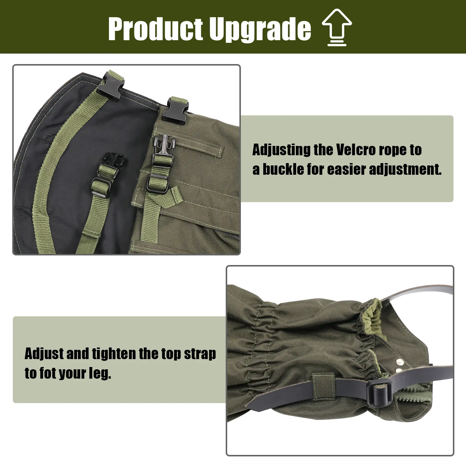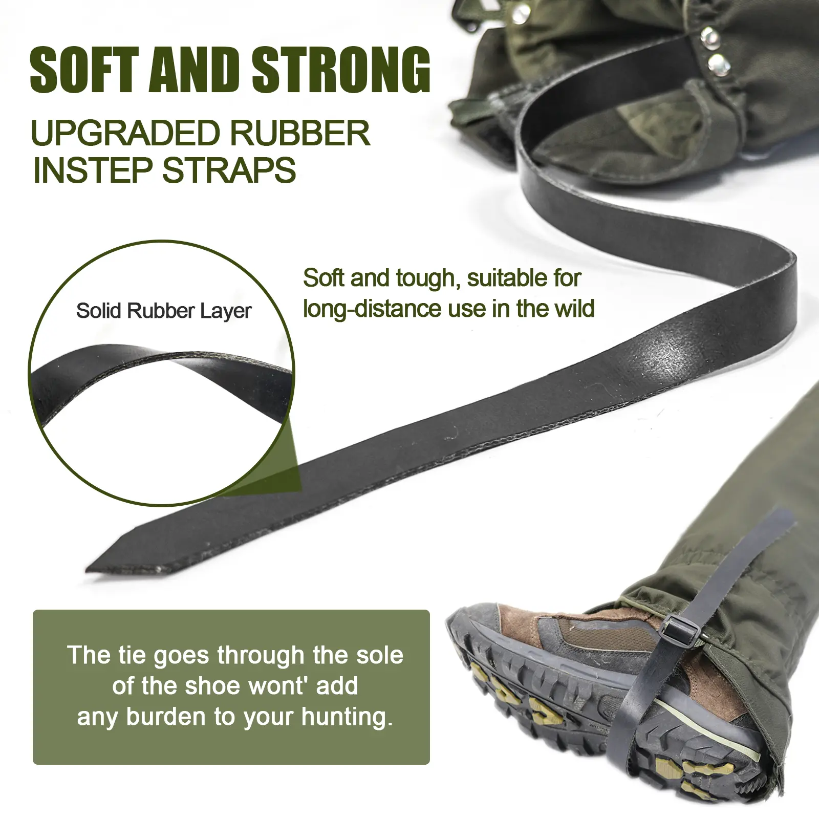 【One Size Fits All】: These hunting gaiters are designed to fit just about everyone. An adjustable drawstring and two different snap adjustments allow for a customized fit around your calf, along with adjustment for your shoe/boot size. The length can be adjusted with the foot strap buckle, making it easy to get your perfect comfortable fit, no matter your size.