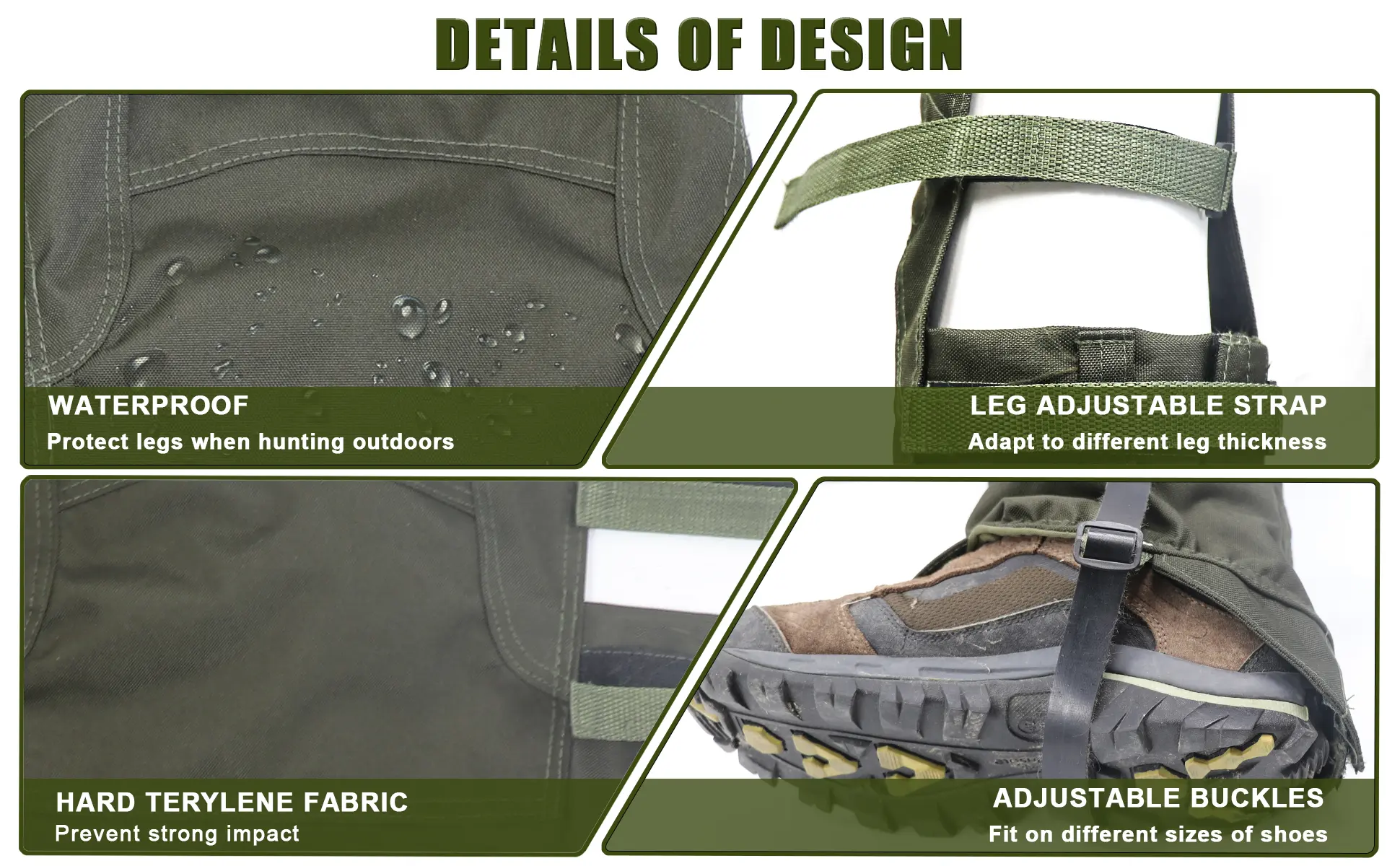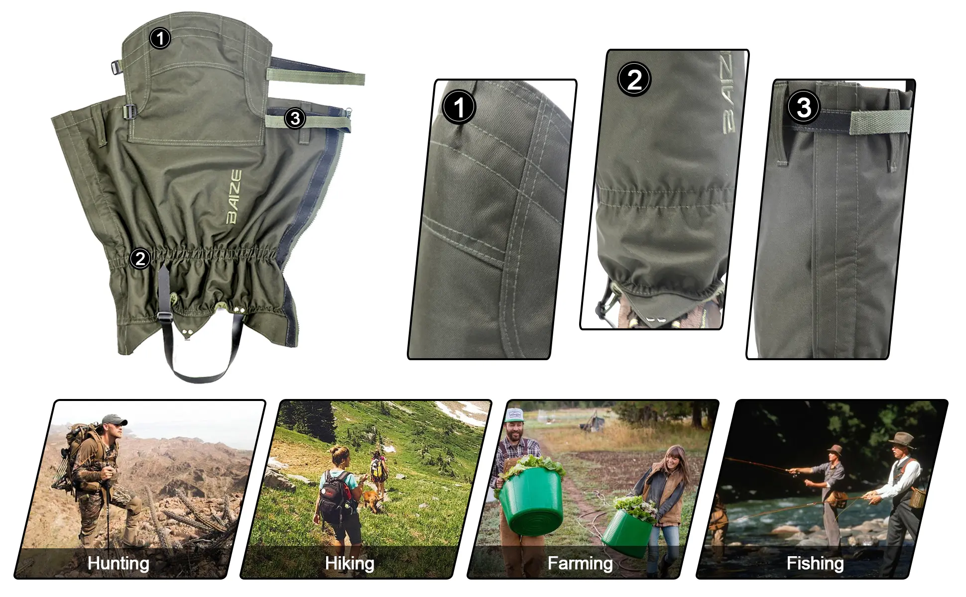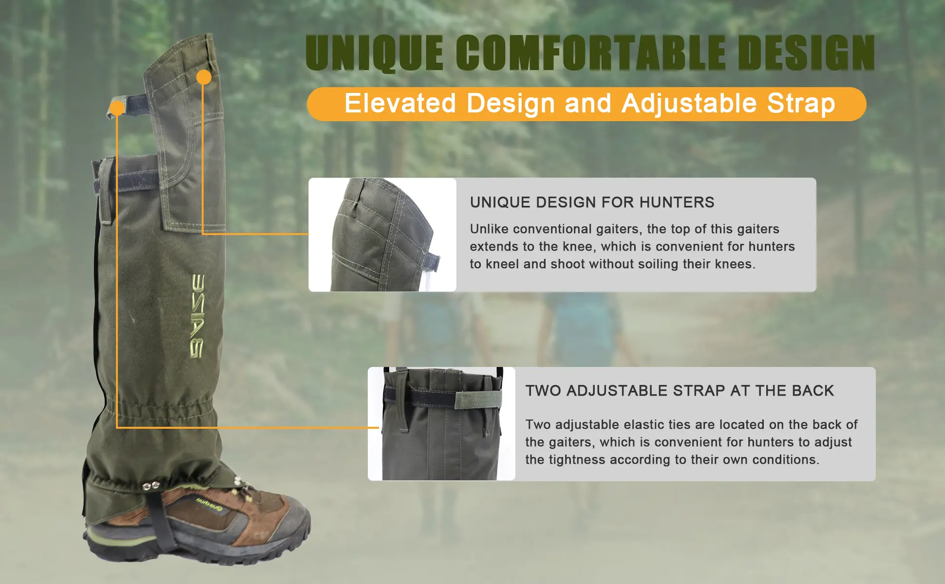【Lengthened Design for Better Knee Protection】: The Baize Tactical Hunting Gaiters have added knee protection, made from the same tough outer fabric but lined with a soft cotton lining for better comfort and movement. This design is ideal for hunters who need to kneel on the ground and shoot without soiling their knees.