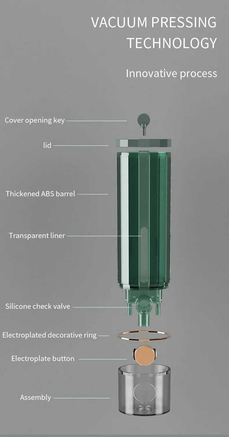 This wall-mounted dispenser offers convenience and functionality for your bathroom accessories. With its sleek design and easy-to-use press mechanism, it provides a seamless experience for handwashing and sanitizing.