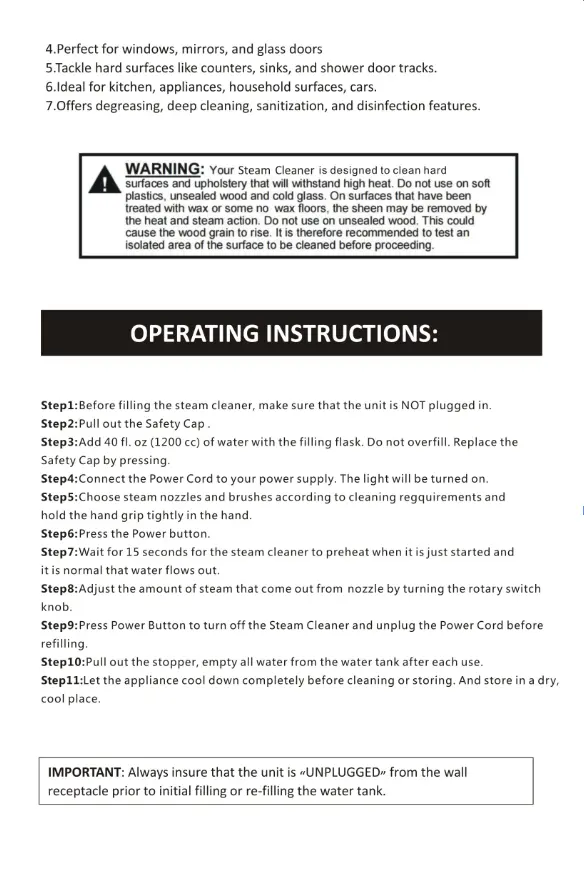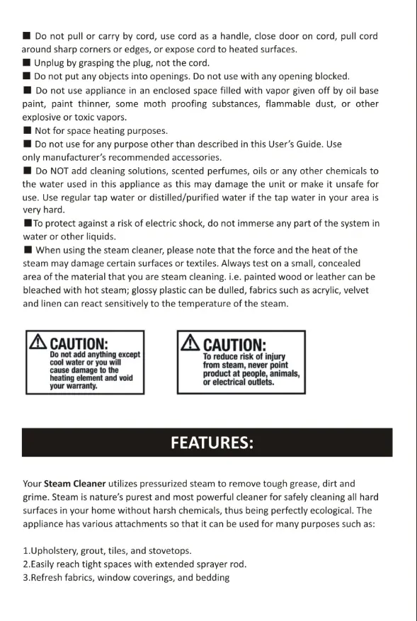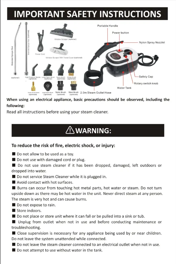 3. Lengthen power cord and steam hose, one-person operation is not laborious, can meet cleaning needs.