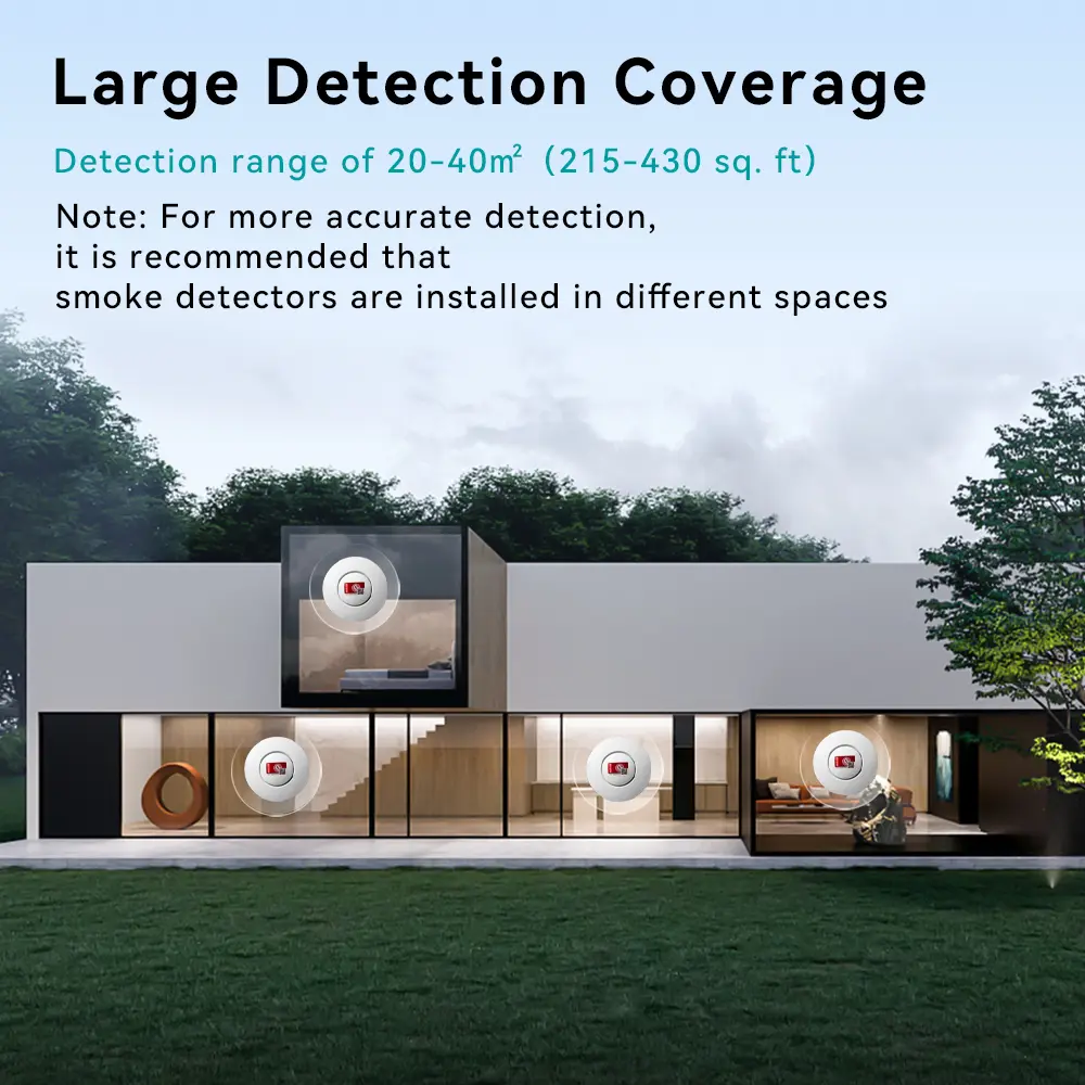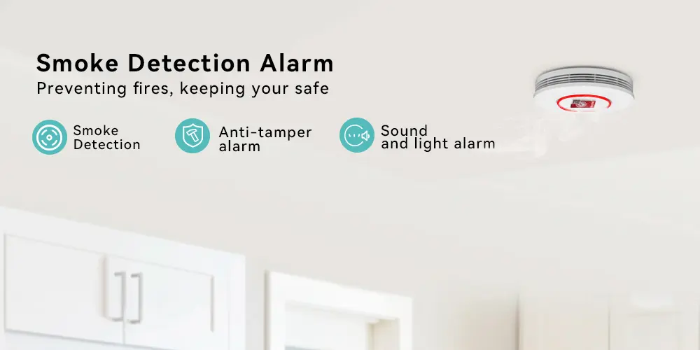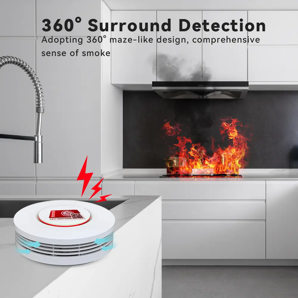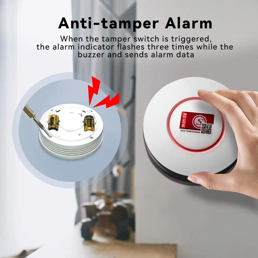 Smoke and temperature sensing integrated design, when the sensor detects high smoke concentration or high indoor temperature (>70°), it will alarm in time, which is a necessity for indoor fire prevention.