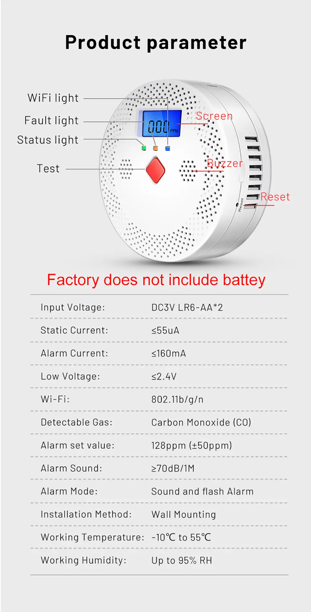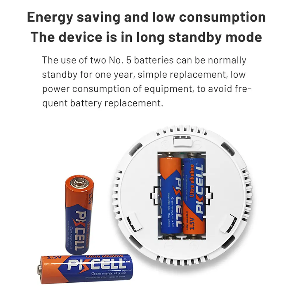 2.High-sensitivity smoke detection:when a fire occurs, the sensor will sensitively detect smoke, send out an alarm bell, and then push the notice to your smart phone to protect people and property. Exclusive smoke intelligent algorithm has high sensitivity, no false alarm and strong anti-interference ability.