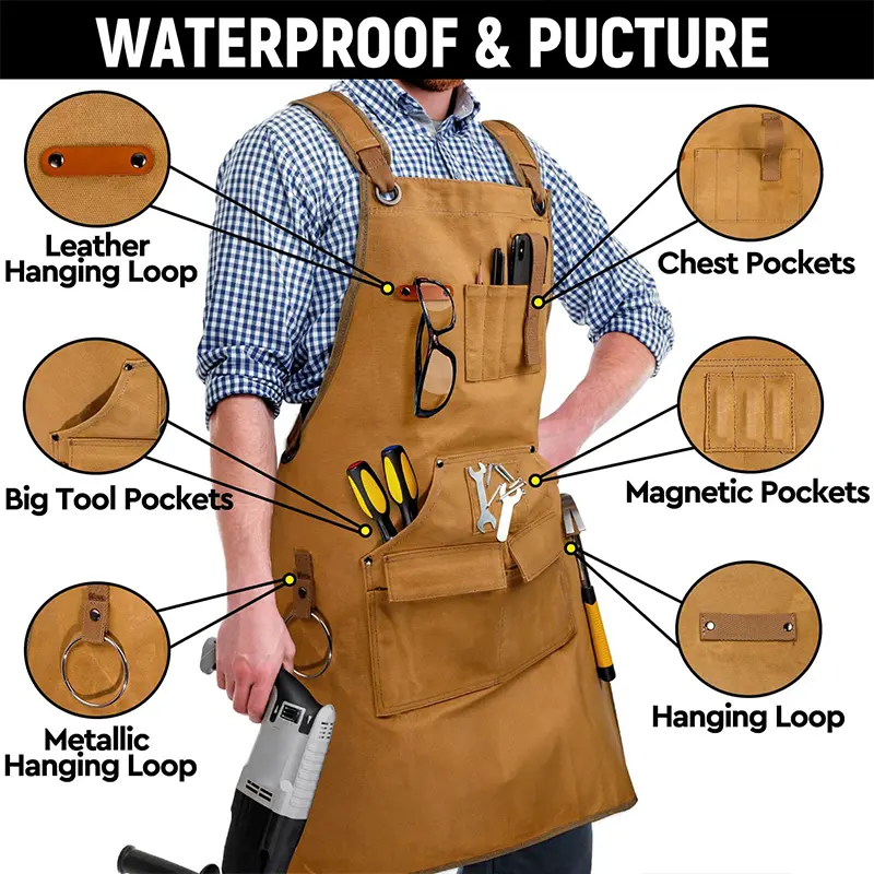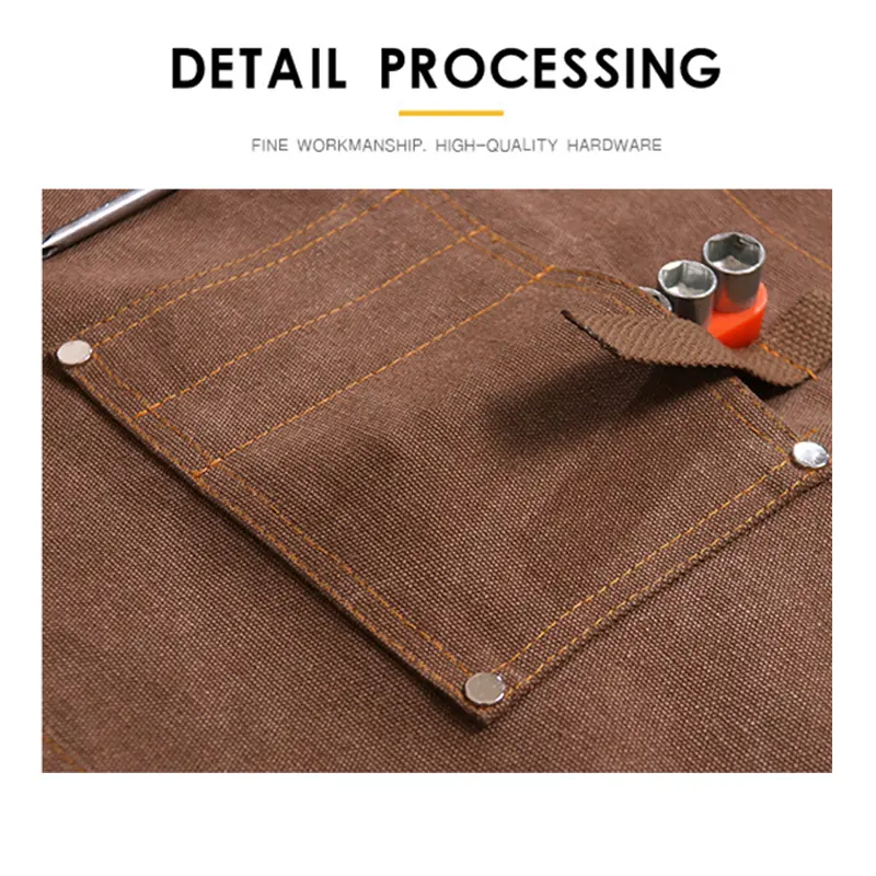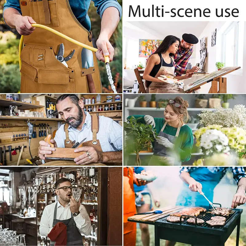 2.Multifunctional Tool Bag: There are many different bags designed on the canvas apron to store various working equipment, such as: pencils, hammers, brushes, keys, mobile phones, screws, screwdrivers, scissors, etc.