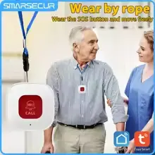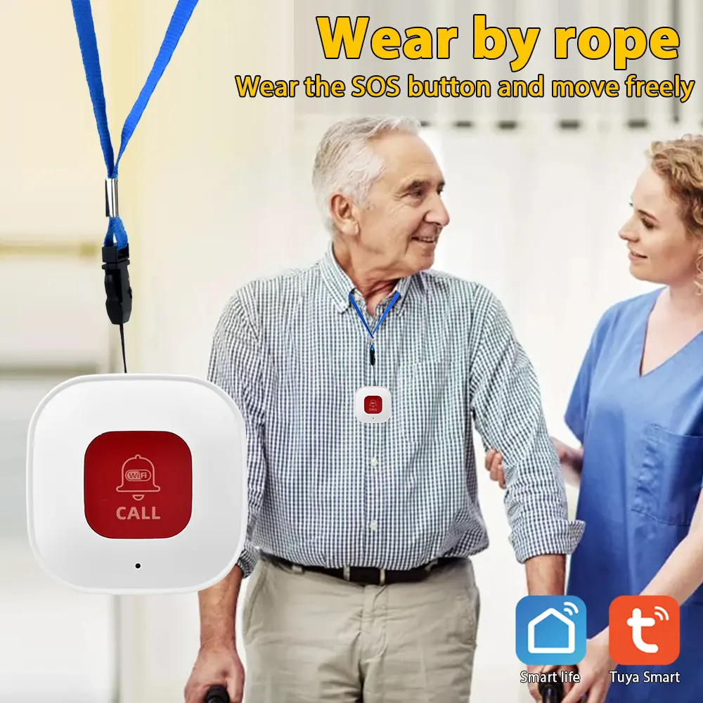 SMARSECUR Tuya WiFi Smart SOS Call Button Wireless Phone Alert Transmitter Emergency Call Button for Kids Elderly Patient