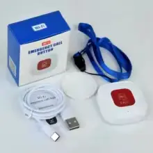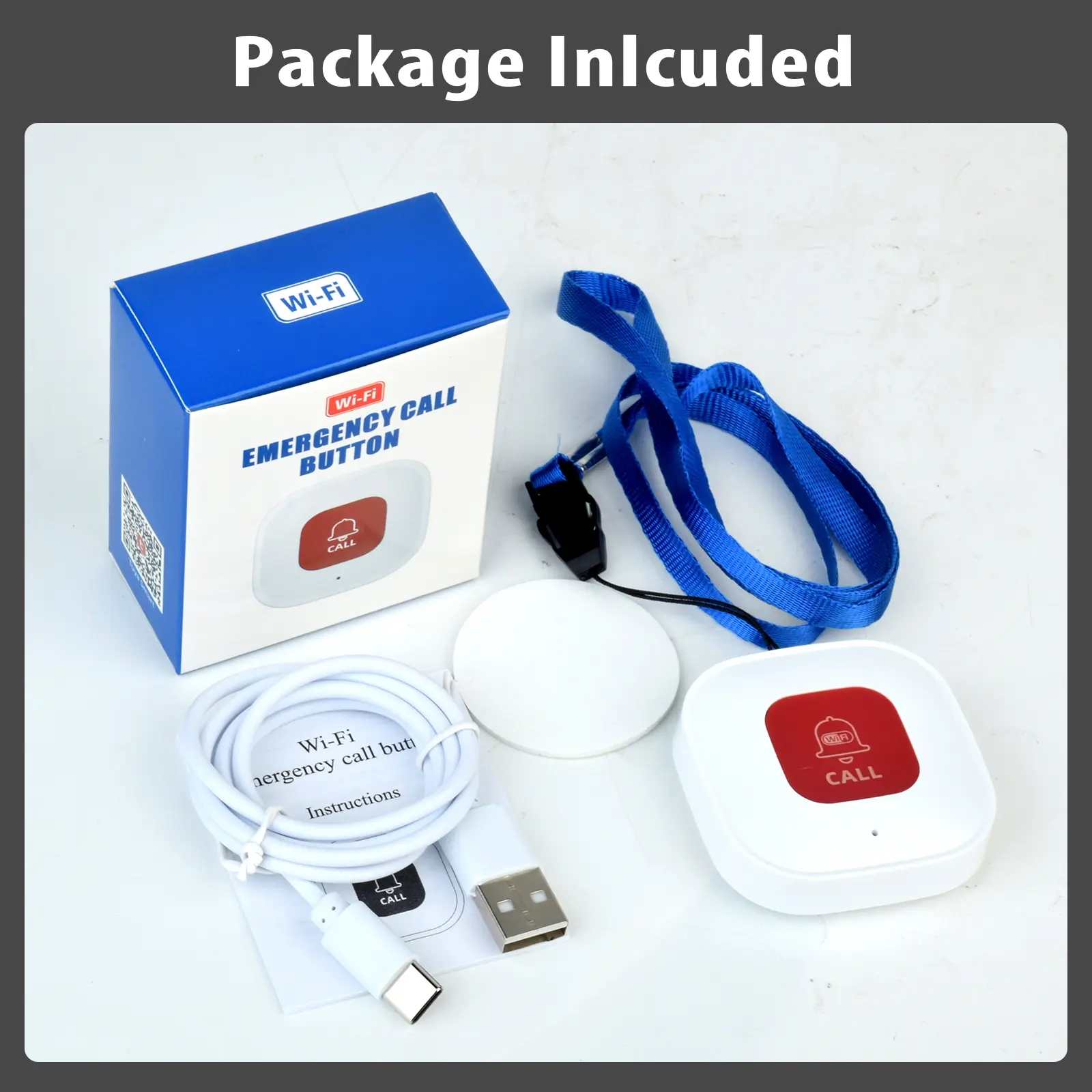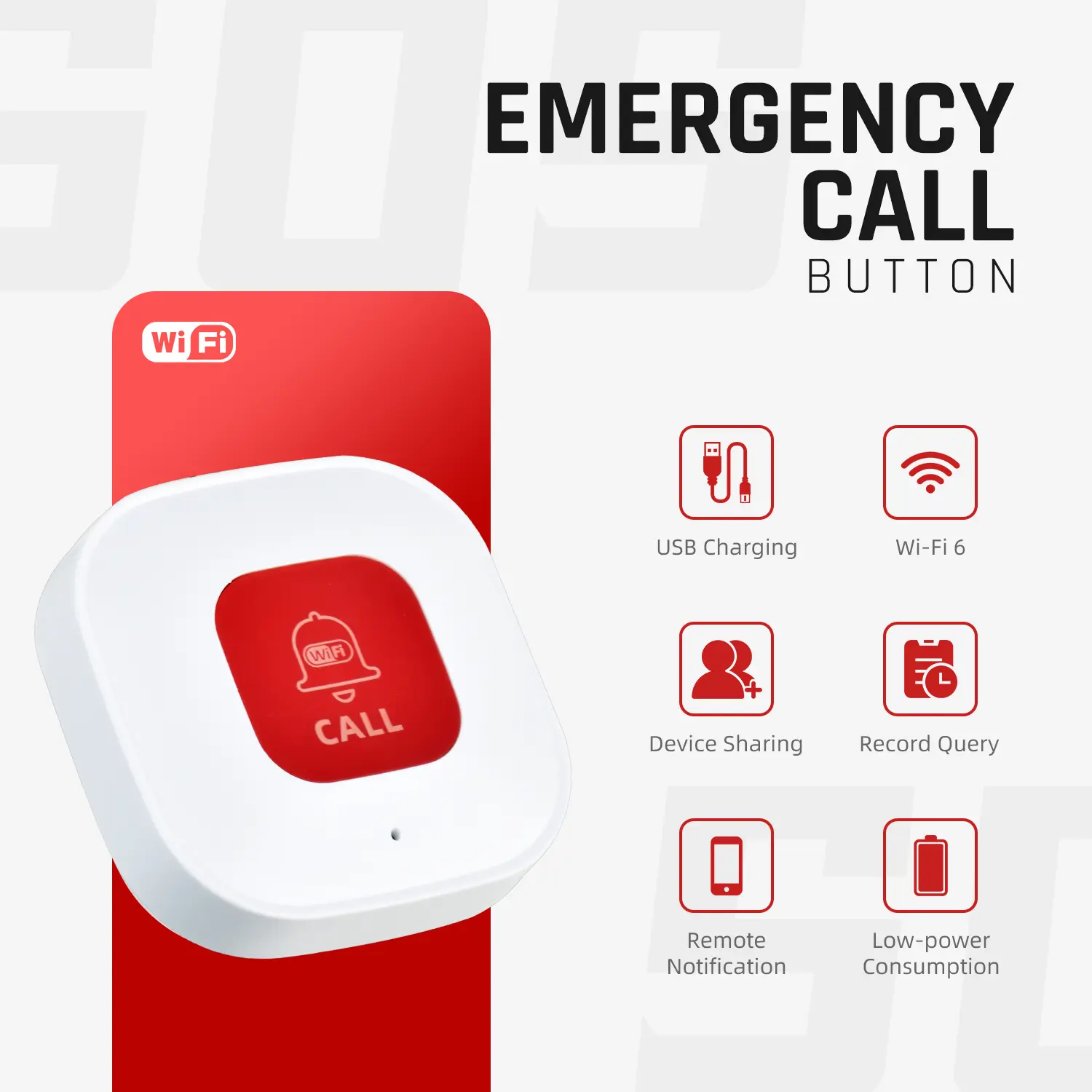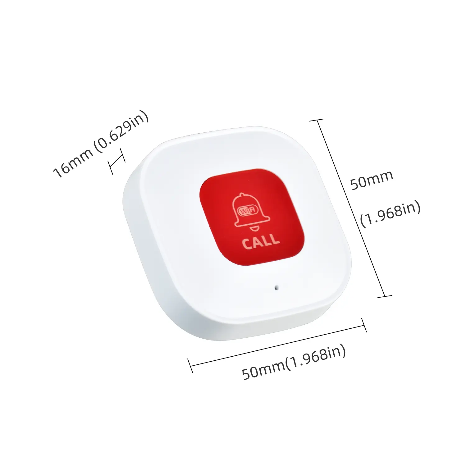Smart caregiver call button, supports 2.4GHz WiFi, and 10m wireless range.