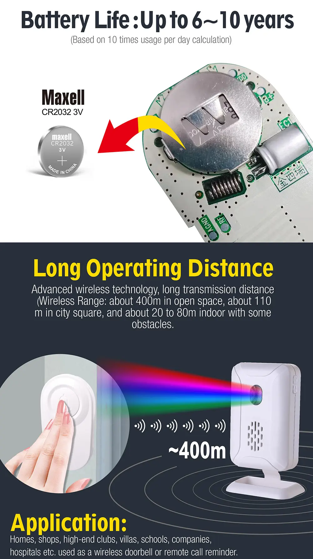 [5] Long-distance transmission, with an open space of 280 meters, suitable for larger places and special speakers for independent alarms on higher floors, up to 113dB, which can effectively scare off thieves.