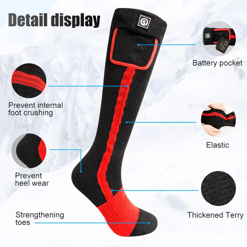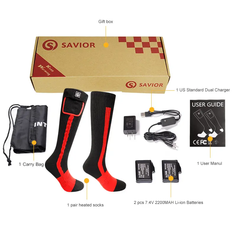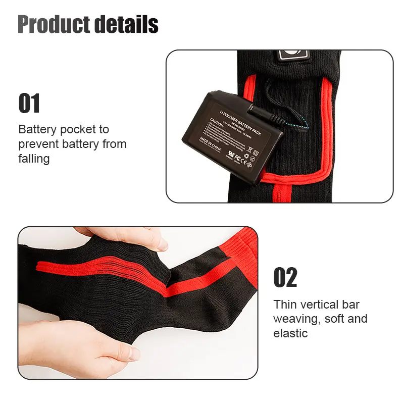 [high quality imported materials] this winter sock has a long service life and is equipped with a 7.4v UL / CE certified 2200mAh lithium ion rechargeable battery. It adopts high-quality materials and dual cable charging system, which can charge the battery at the same time and facilitate the removal of the battery.
