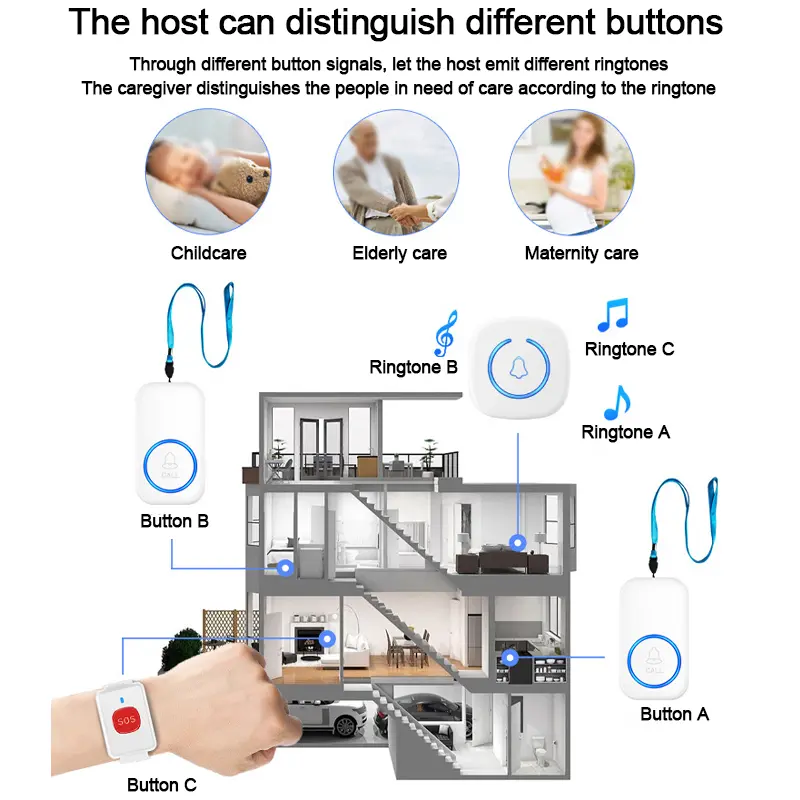 Through different button signals, the host can emit different ringtones to help distinguish the direction of the incoming person.