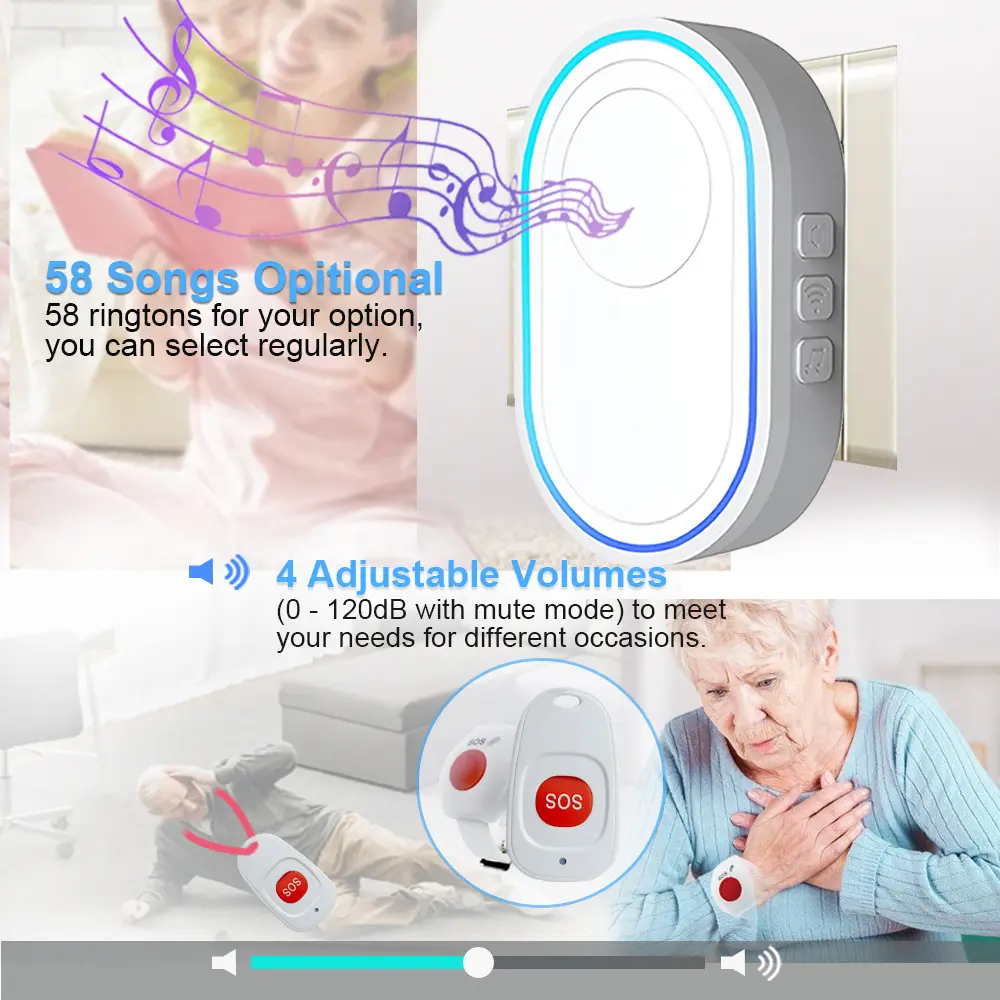 Topvico Panic Button Elderly Alarm System Caregiver Pager SOS Bracelet Emergency 433mhz Wireless Watch Call Senior Old People
