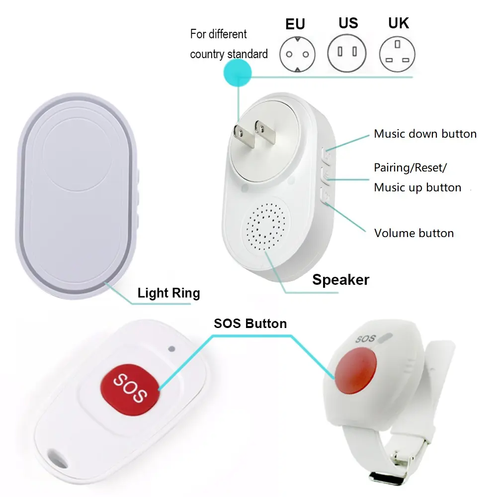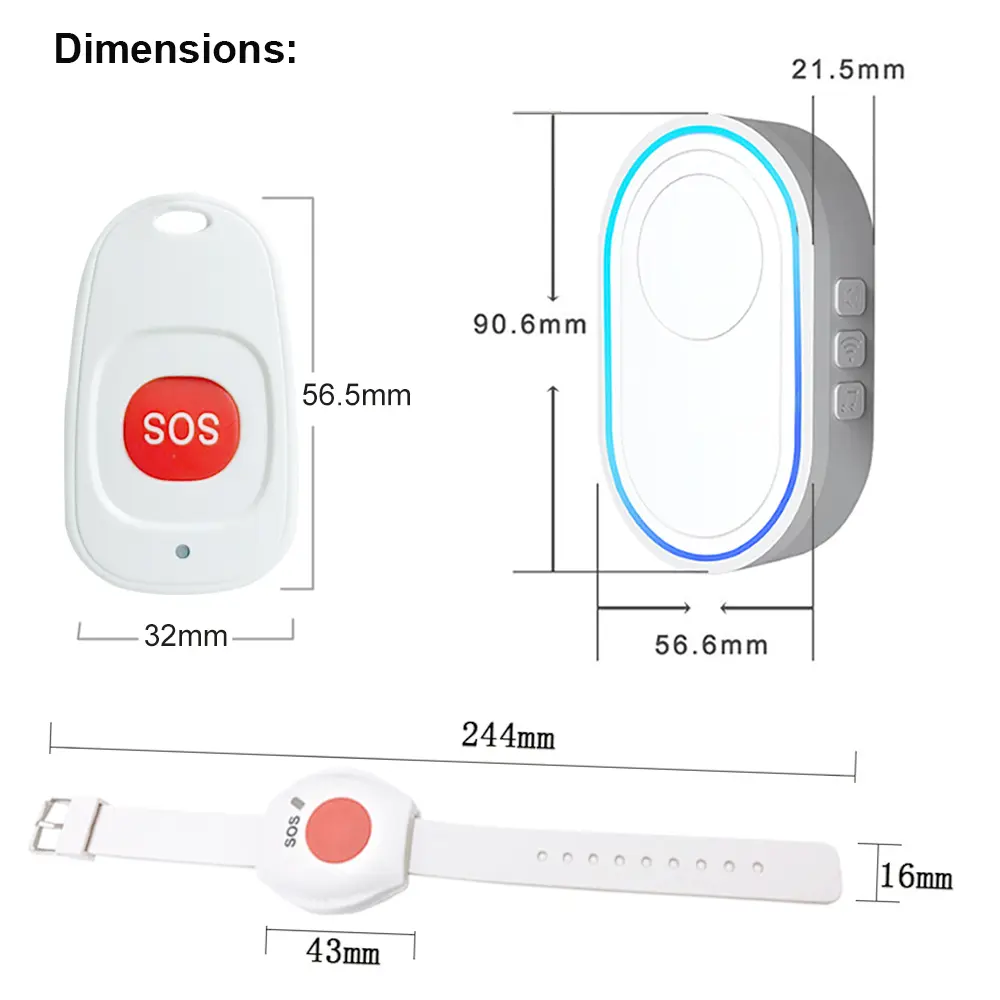 – SOS button and receiver hub work distance about 15 to 30 meters indoor (open area about 80 to 100 meters)
