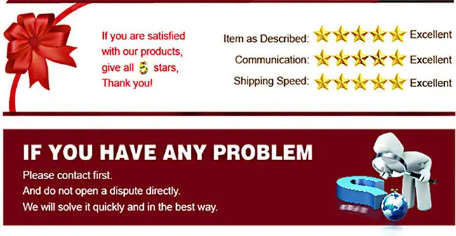 If you have any problems with our items or services, please feel free to contact us first before you leave negative feedback.