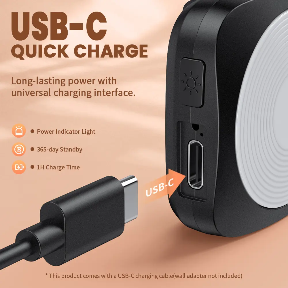 In alarm mode: The white light flashes and the device emits an alarm sound, which is close to 120-130dB