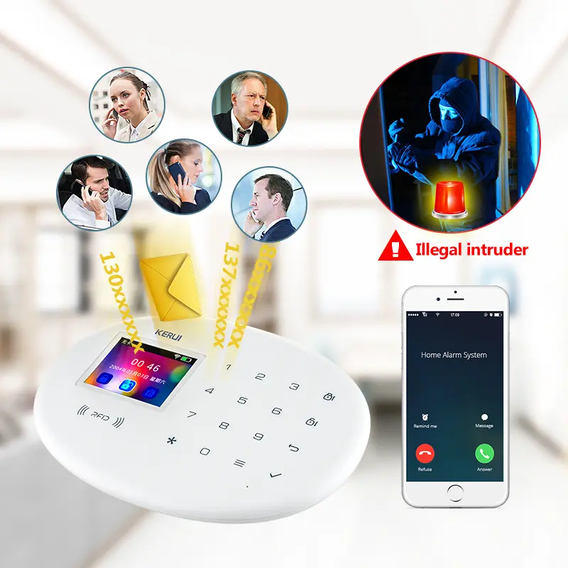 Compatible with wireless PIR sensor, door sensor, smoke detector, gas detector, panic button etc. It has been widely used in home, factory, school, shop, villa and residential area to provide protection for valuable assets