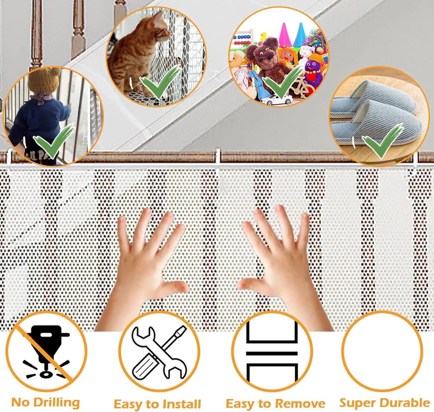 Kids Stairs Safety Net Durable Child Safety Protective Net Multipurpose Bannister Guard Deck Fence Fine Mesh for Balcony Stairs