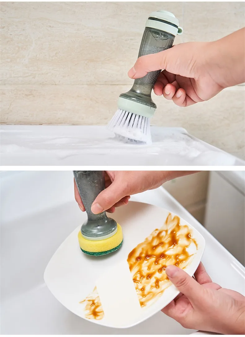 NAME: Kitchen Pot Wash Brush Dish Cleaning Tools Long Handle Dishwashing Sponge Liquid Soap Dishwasher Gadgets Home Utensils Supplies