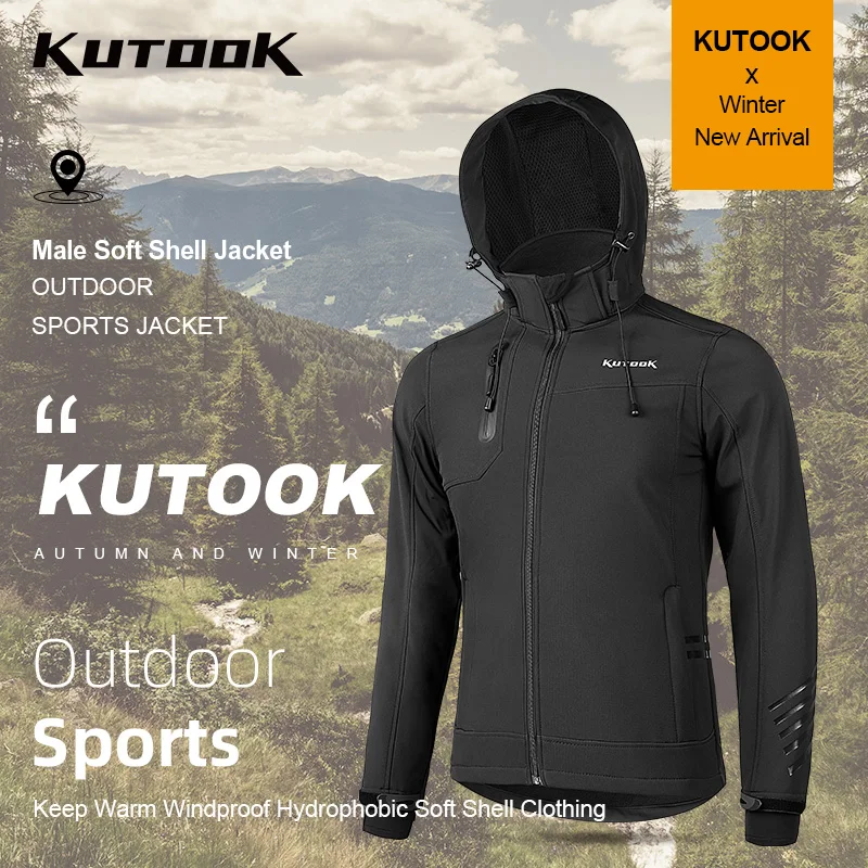 KUTOOK Outdoor Sport Men Soft Shell Jacket Waterproof Coat Winter Autumn Bicycle Clothing Thermal Hiking Hunting Jacket HC001