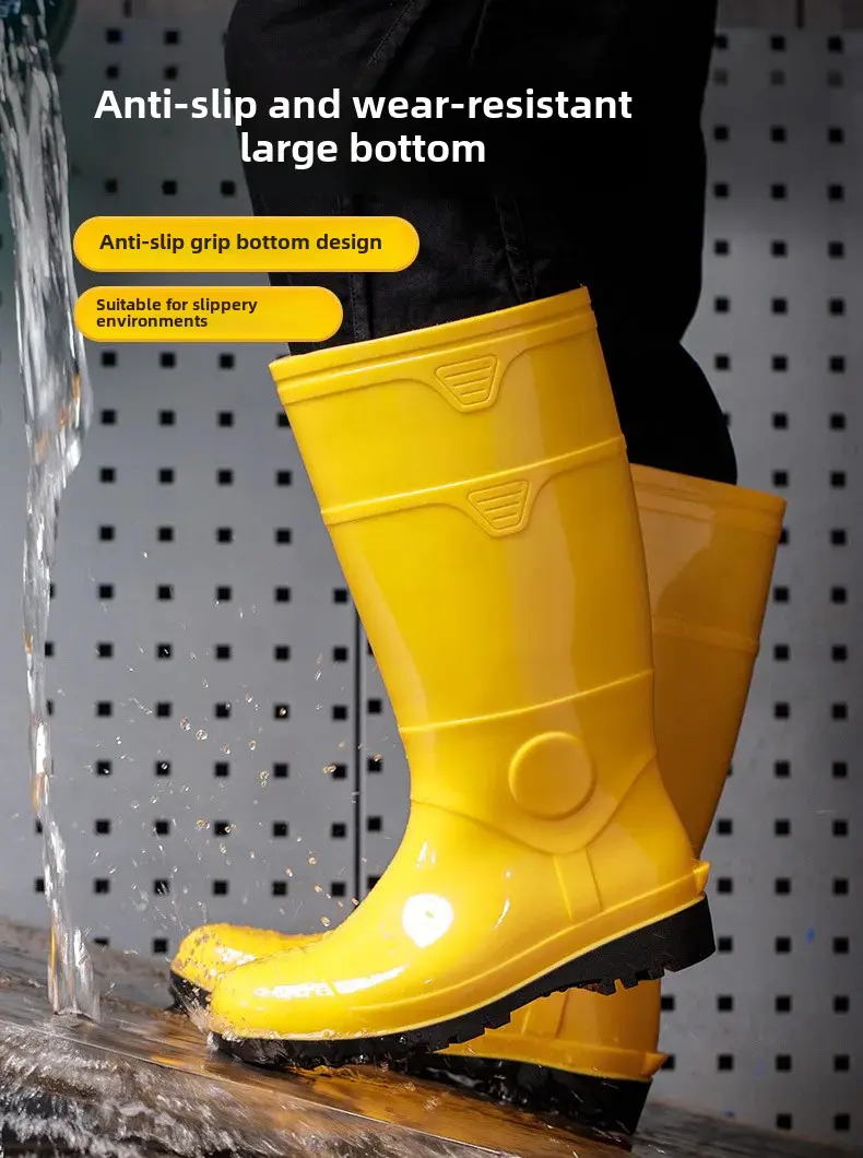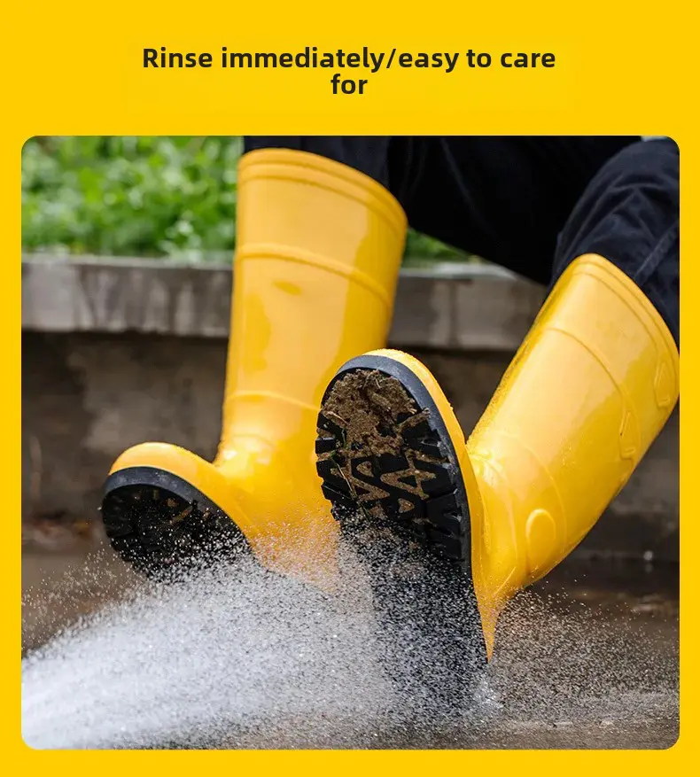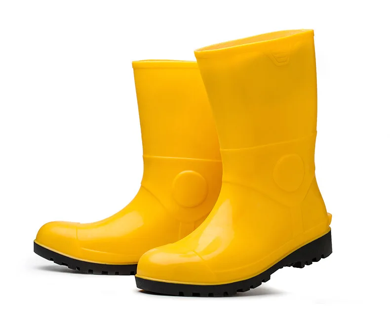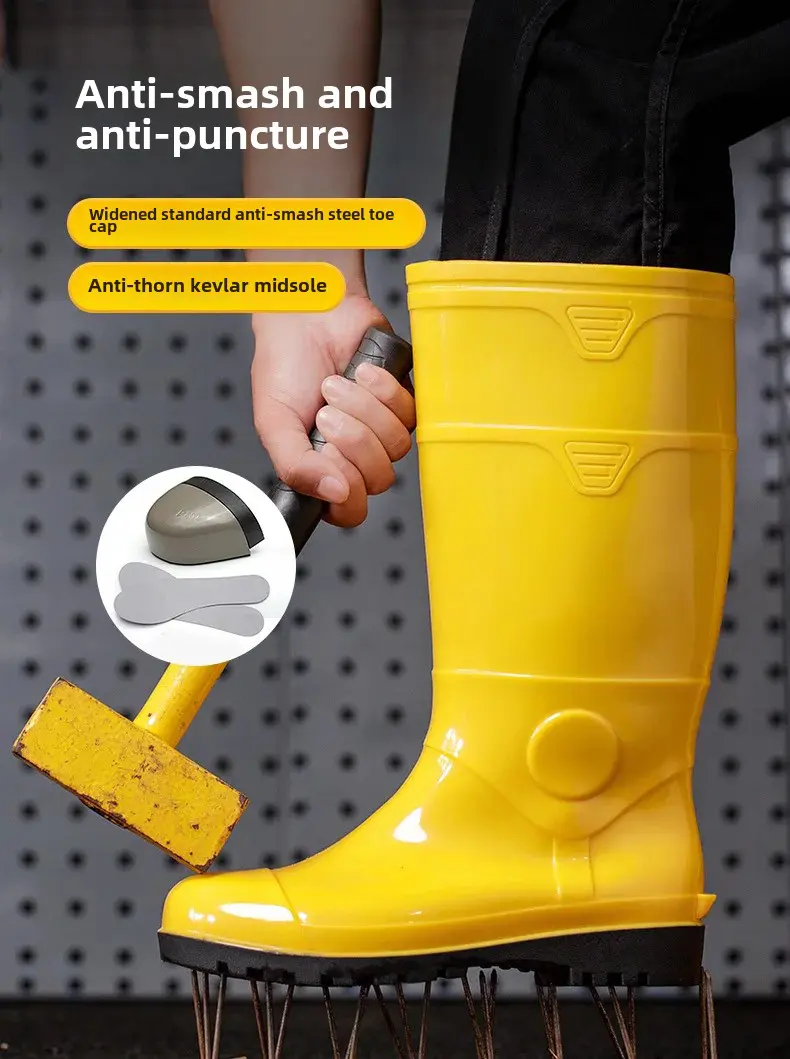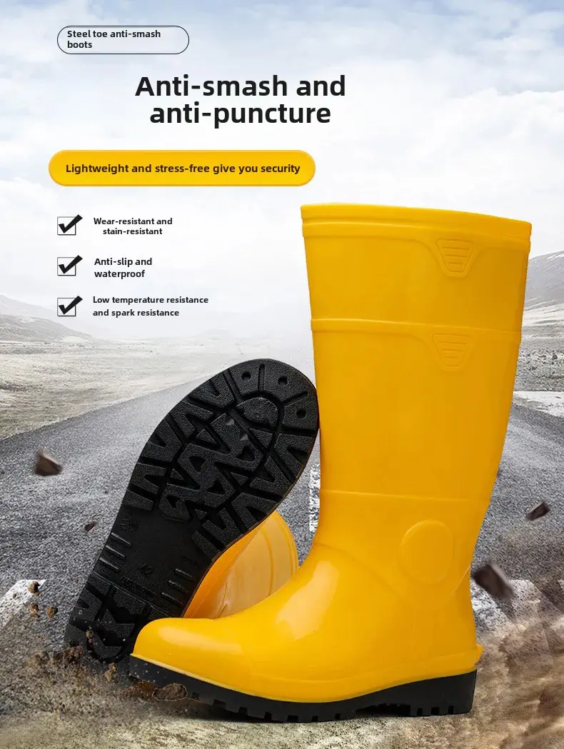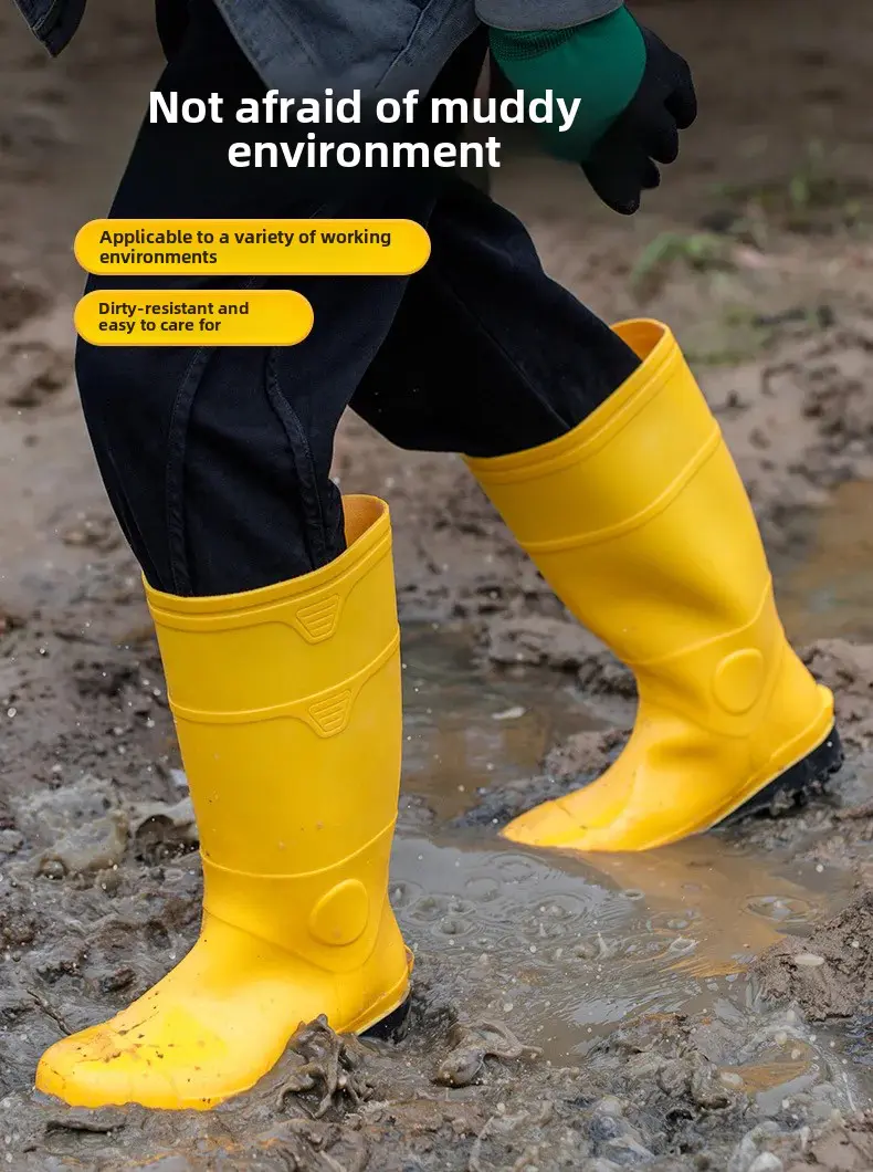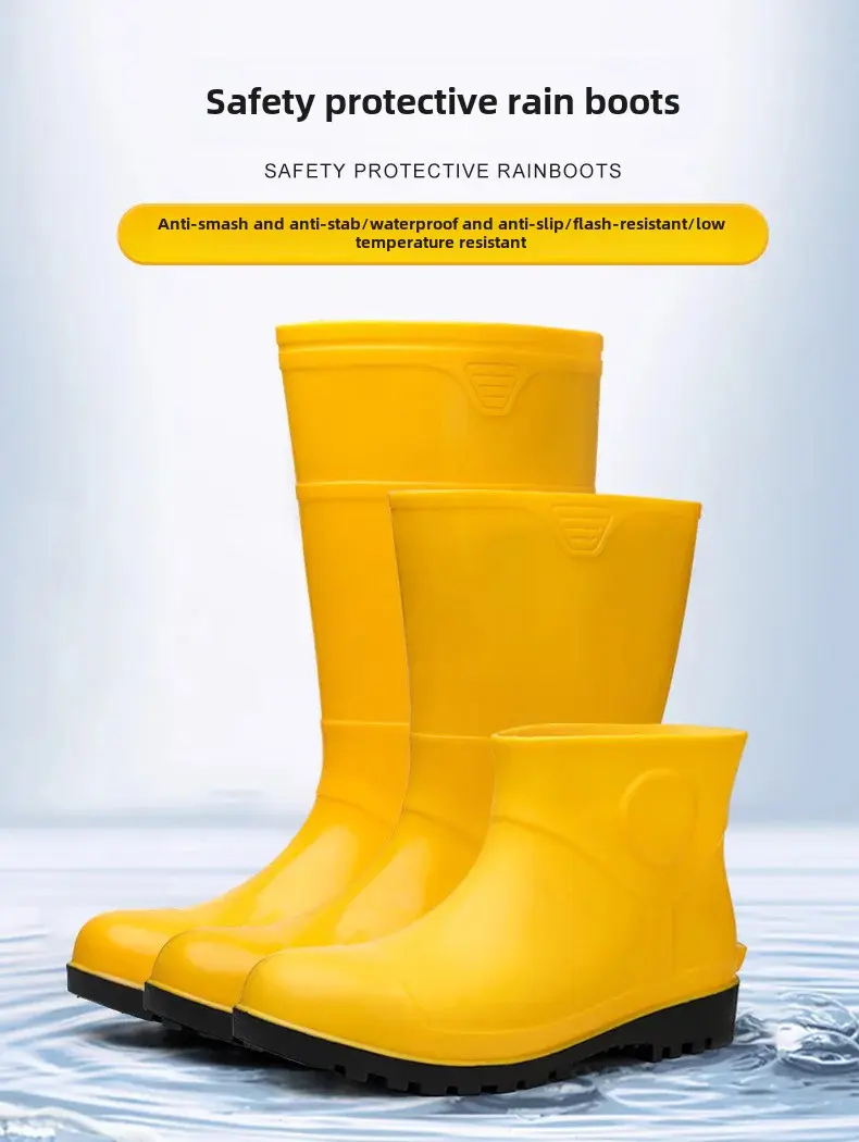 Labor Protection Rain Boots Men Anti-smashing Anti-piercing Medium Top Steel Toe Steel Plate Oil Resistant Yellow Water Shoes