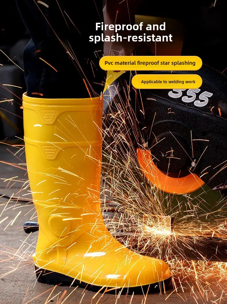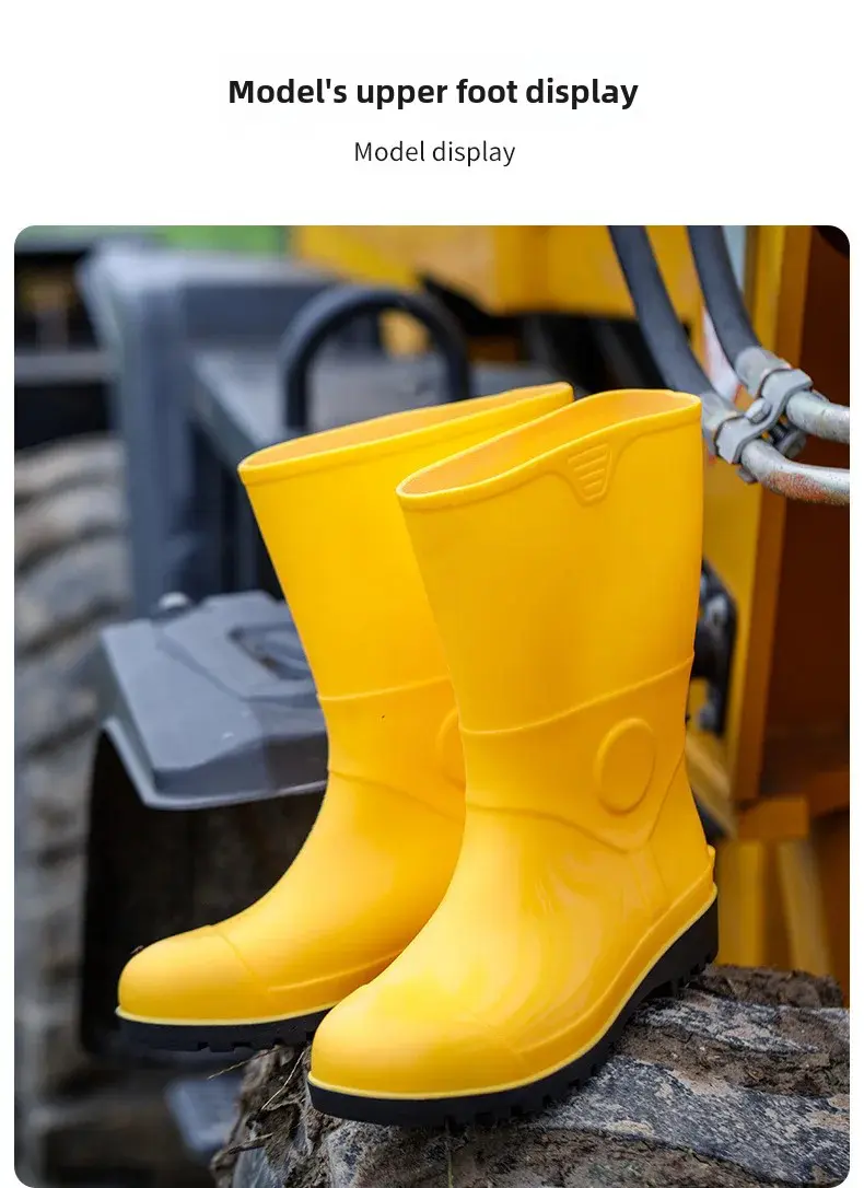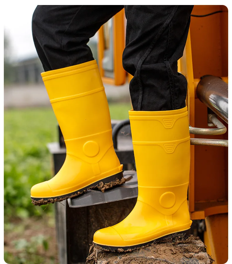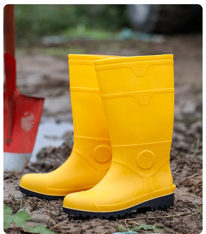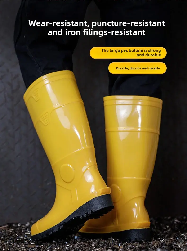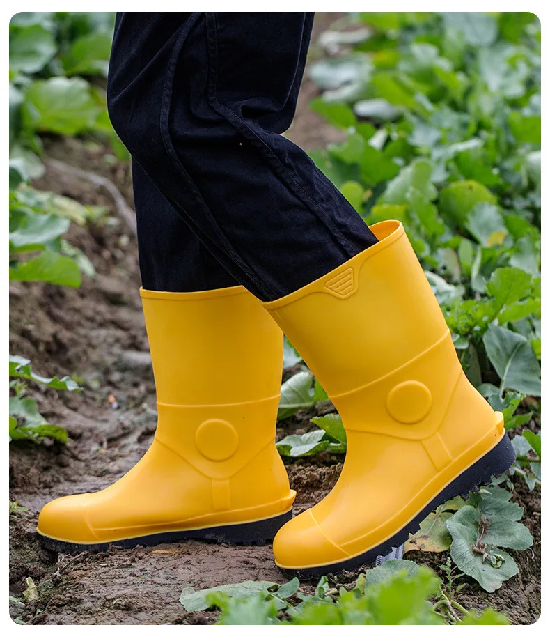 Labor Protection Rain Boots Men Anti-smashing Anti-piercing Medium Top Steel Toe Steel Plate Oil Resistant Yellow Water Shoes