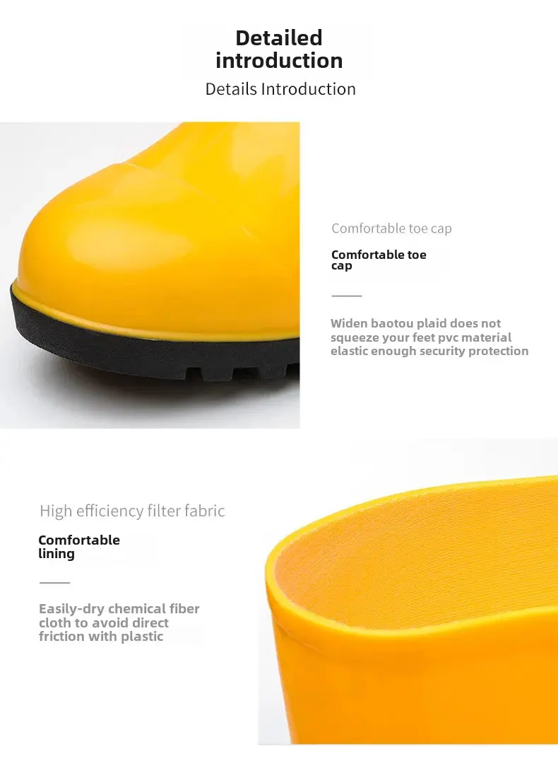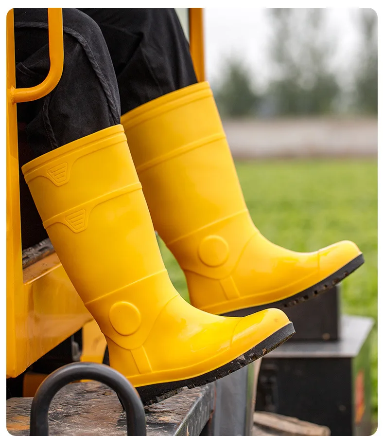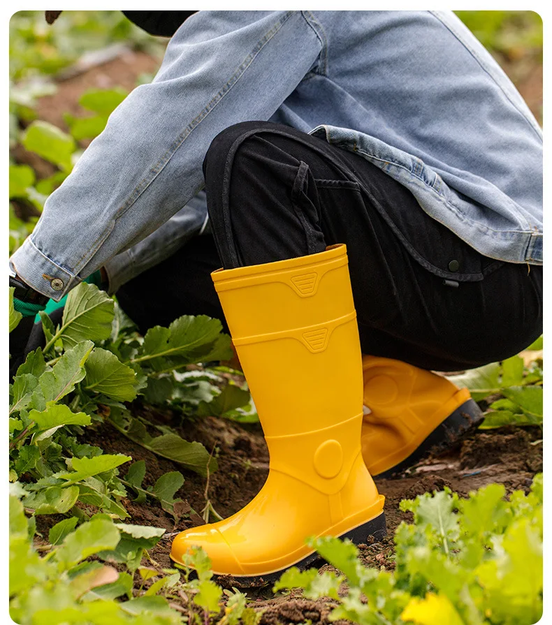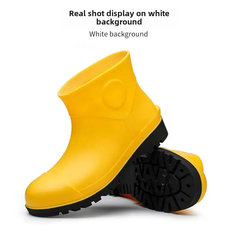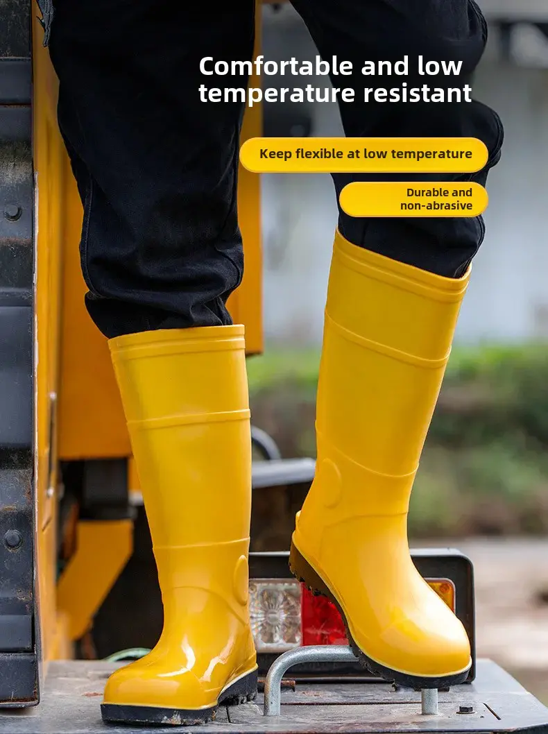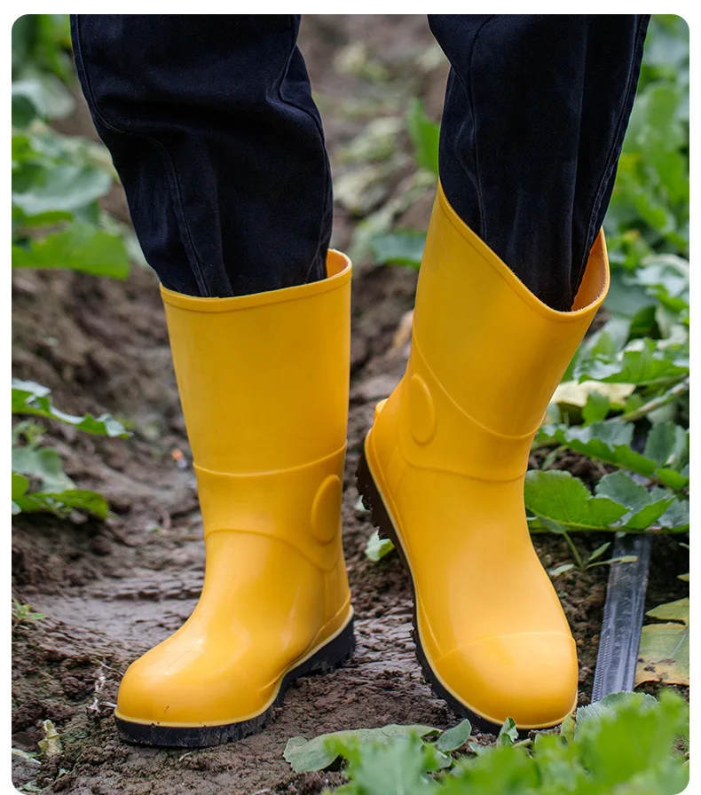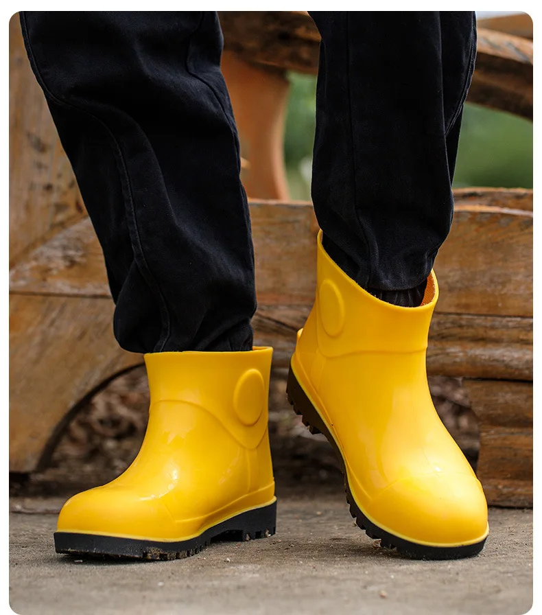 Labor Protection Rain Boots Men Anti-smashing Anti-piercing Medium Top Steel Toe Steel Plate Oil Resistant Yellow Water Shoes