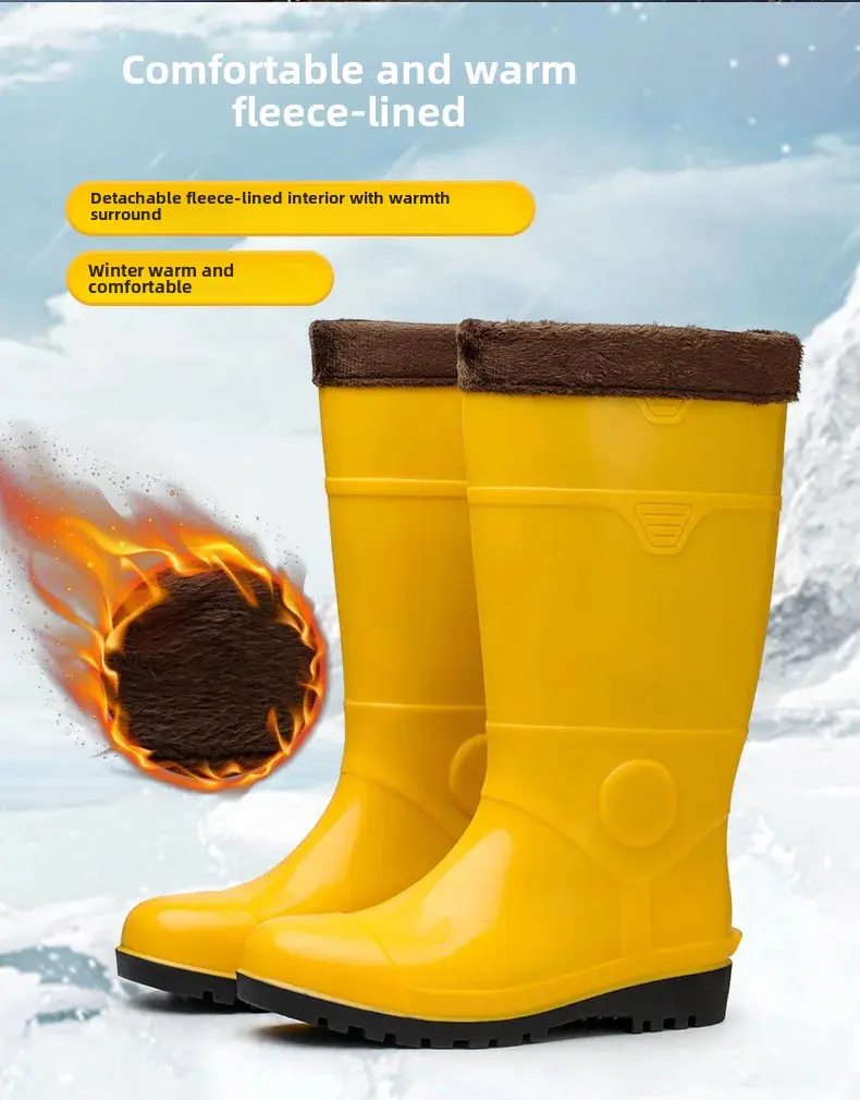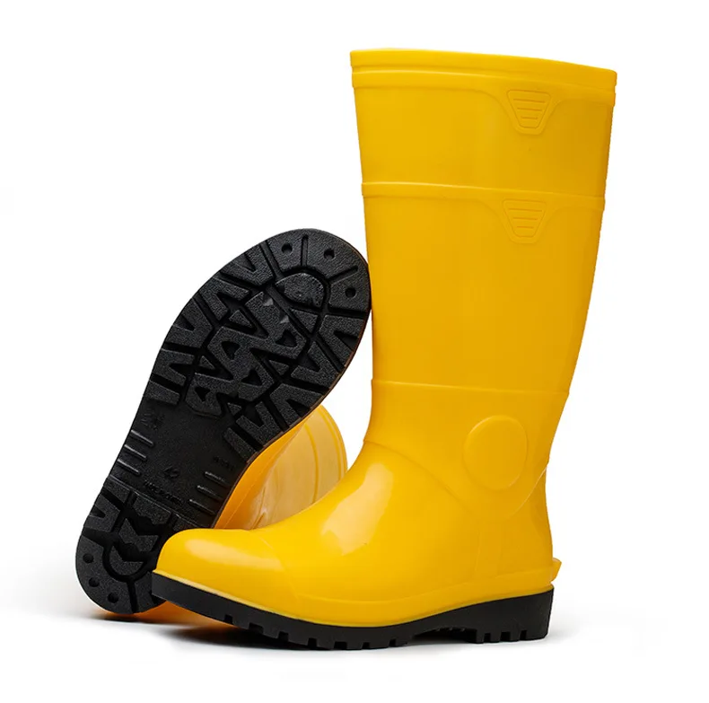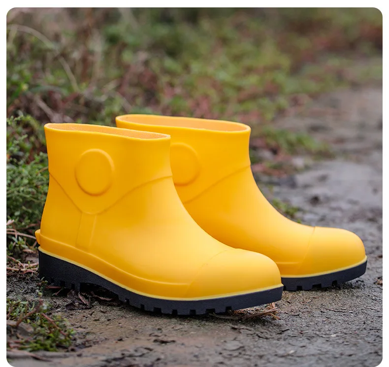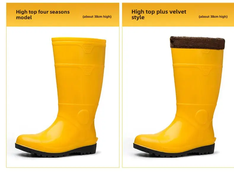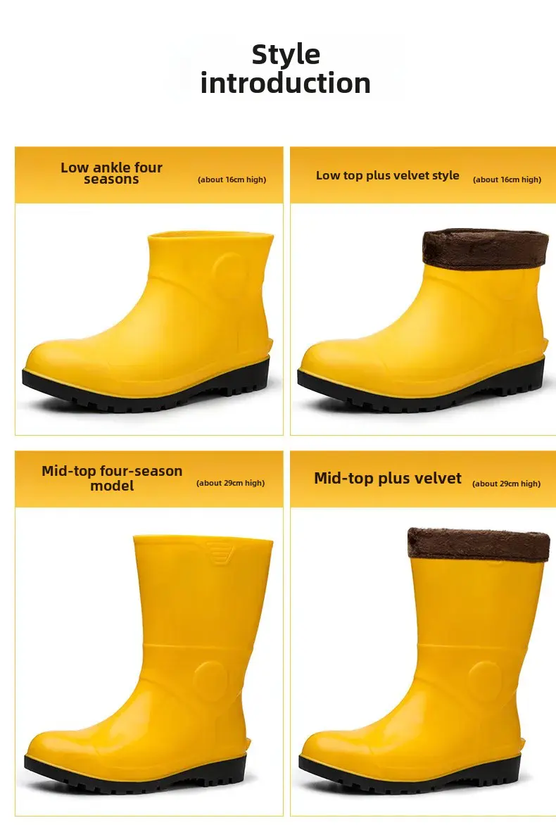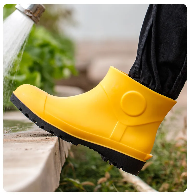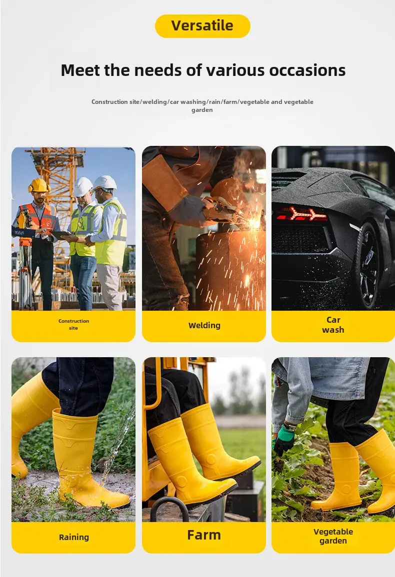 Labor Protection Rain Boots Men Anti-smashing Anti-piercing Medium Top Steel Toe Steel Plate Oil Resistant Yellow Water Shoes