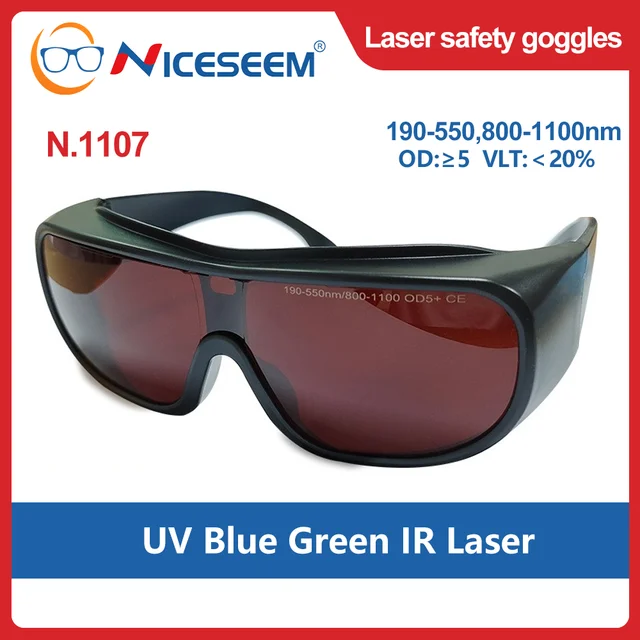 1107 | 190-550nm、800-1100nm | ≥OD5 | <20% | UV Blue Green IR Laser | Diode laser | 808、810、755 |