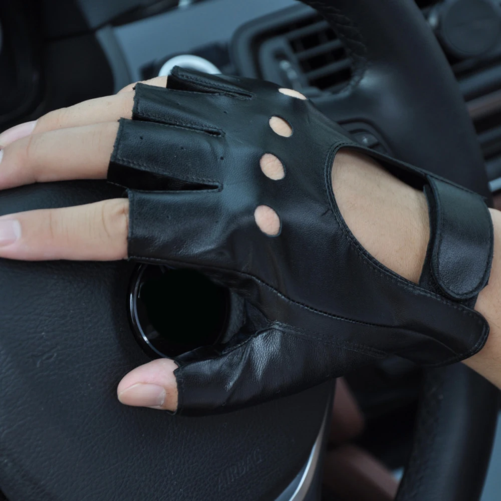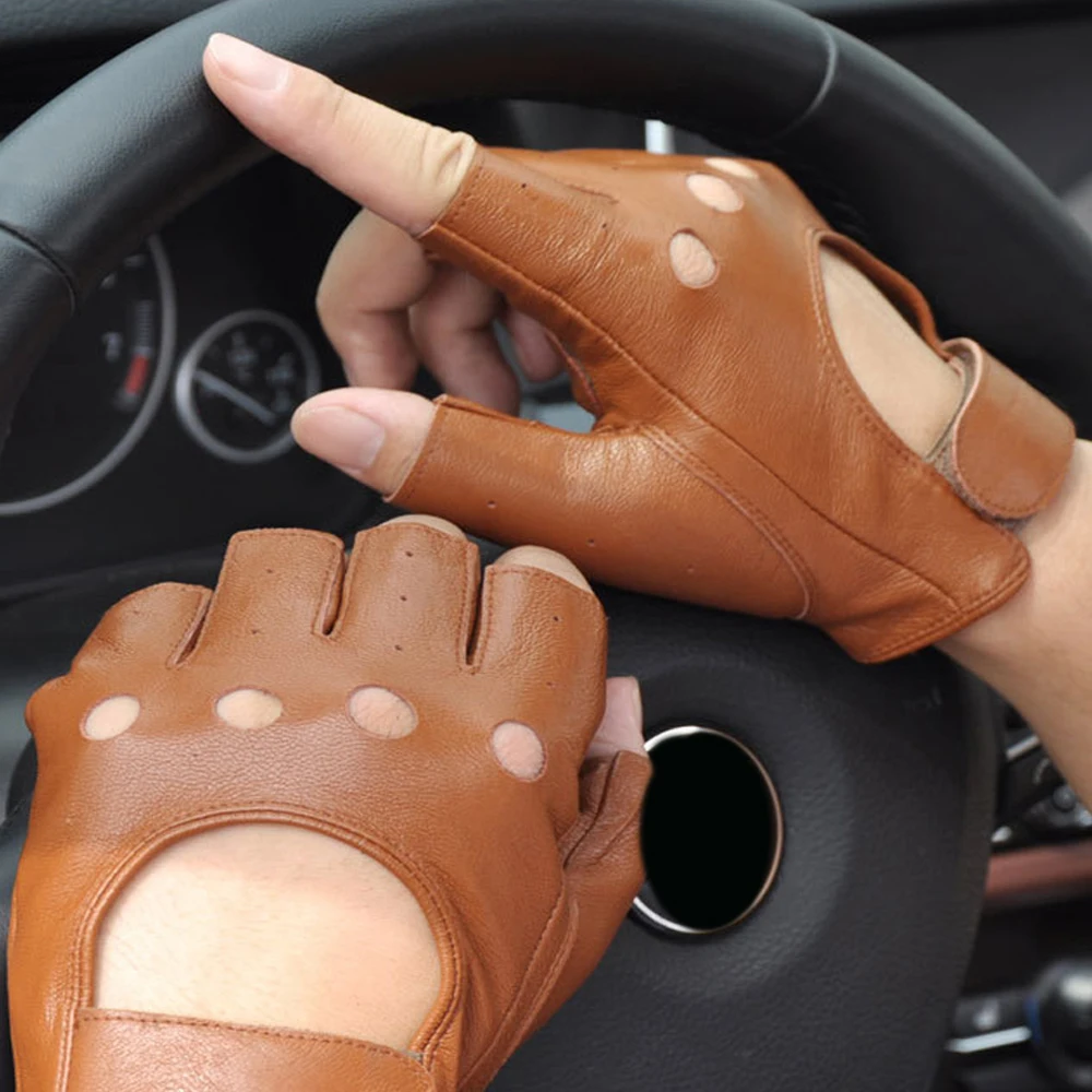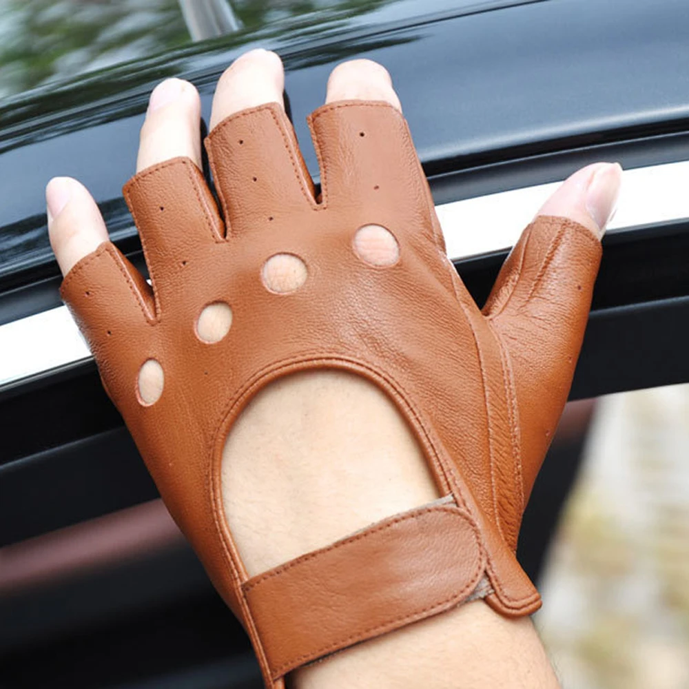 Leather Fingerless Motorcycle Gloves Bicycle Motocross GYM MTB Tactical Work Driving Gloves Men Protective Gear Moto Equipment