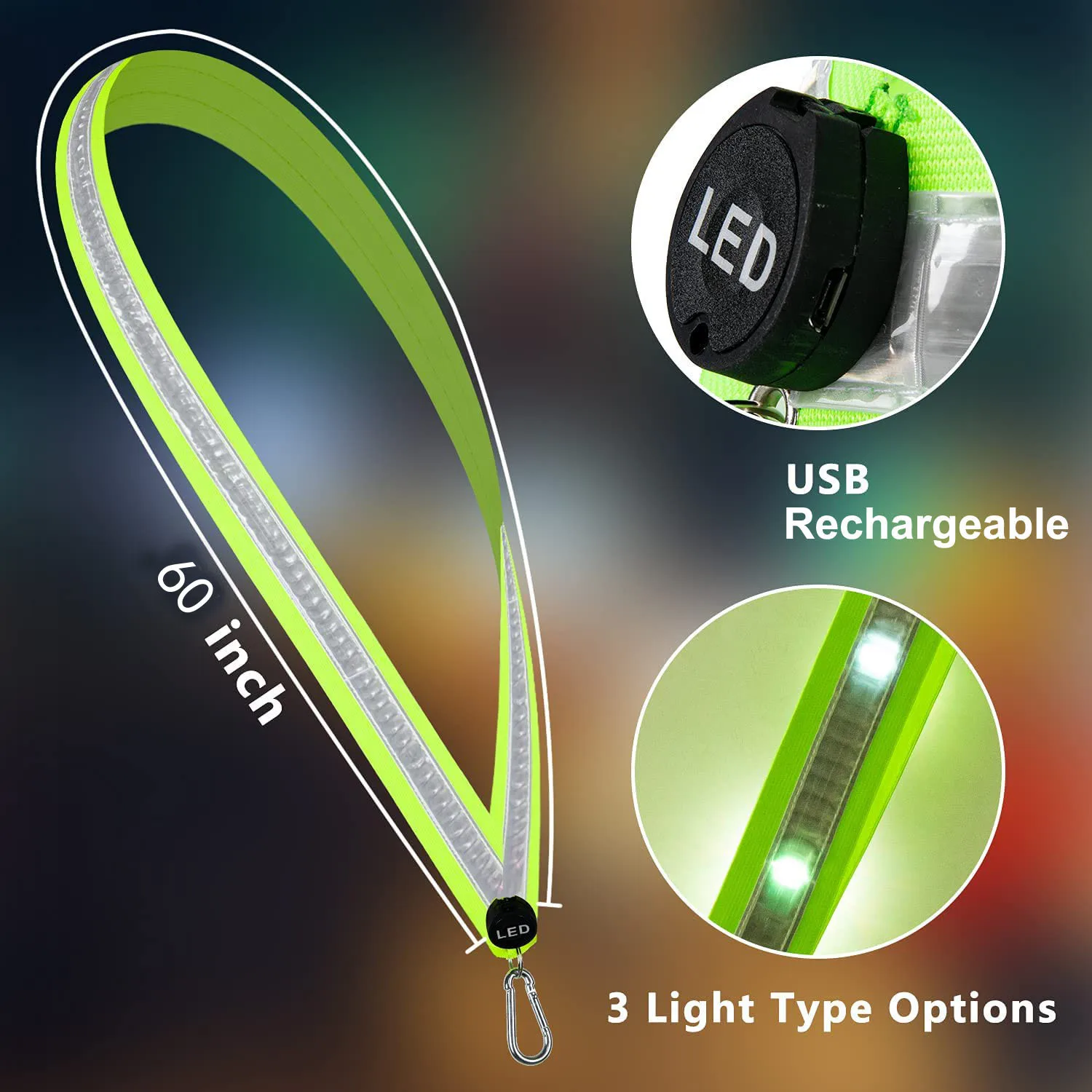 Rechargeable LED Running Cycling Hiking Reflective Vest & Belt for Men Women & Kids – Safe & Comfortable Reflective Vest