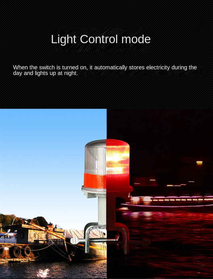 Solar Powered Marine LED Beacon Light Light Controlled Navigation Signal Sailing Warning Light With Portable Detachable bracket
