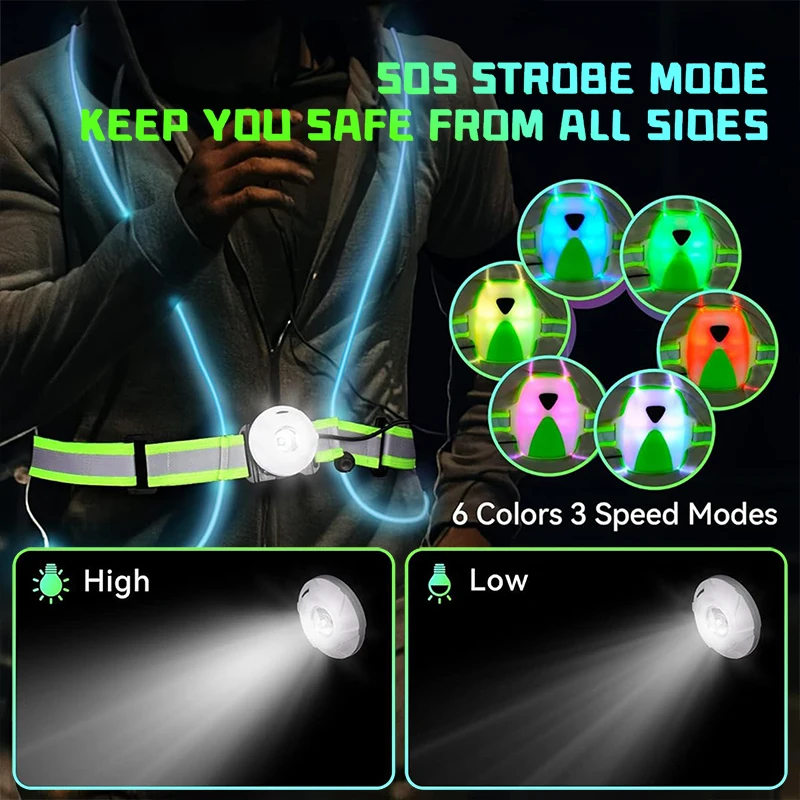 LED Sports Reflective Tank Top Type C Charging Adjustable Outdoor Running Sports Site Safety Vest Strap With lighting