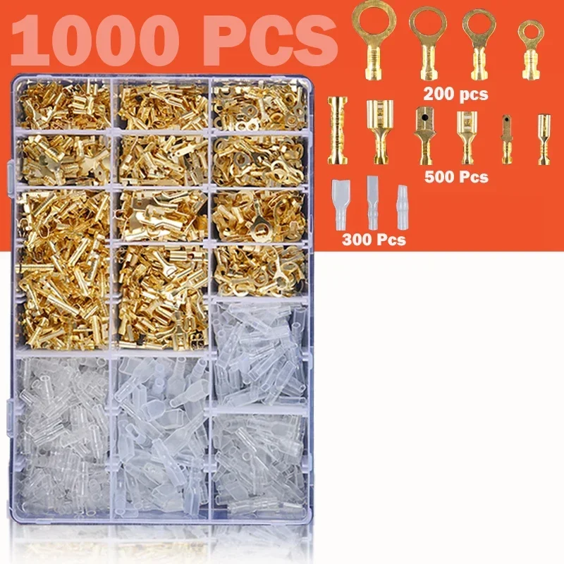 Male Female Wire Box Insulated Cable Macho Connector 2.8/6.3mm Electrical Crimp Terminals Termin Spade Connectors Assorted Kit