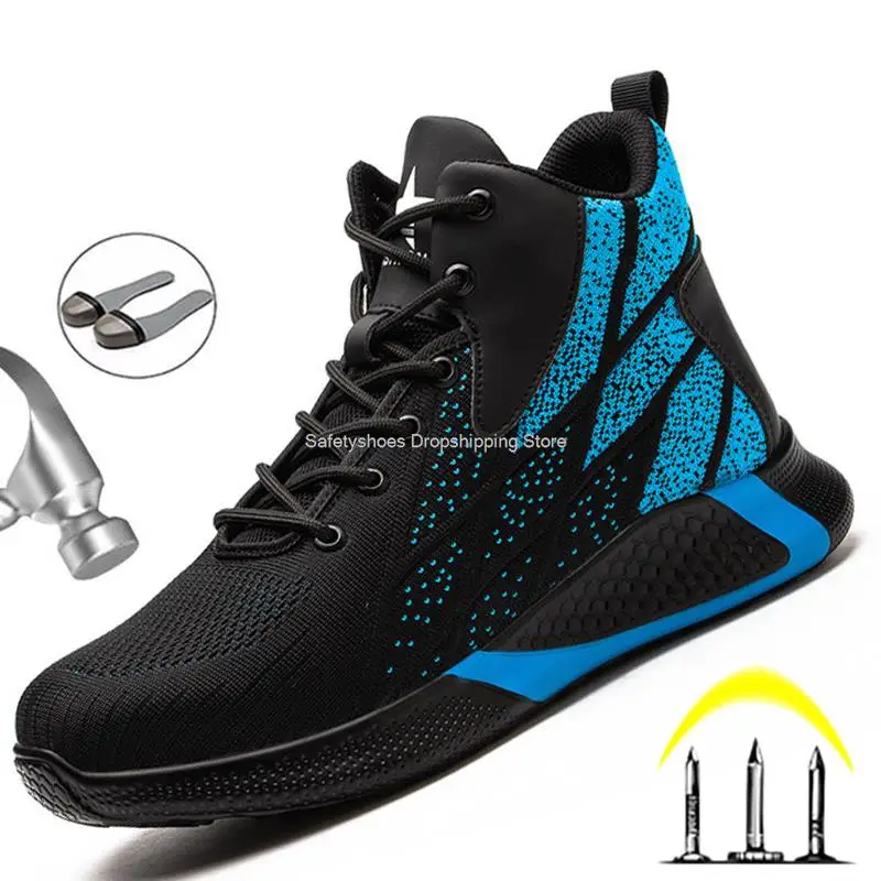 Super light safety shoe:It is like the weight of a pair of running shoes. They can help you to work happily all day without exhausting your feet. With super soft insoles and High elastic sole, your feet are safe and comfortable. Flying knit upper is very soft, Keep your feet comfortable and breathable.