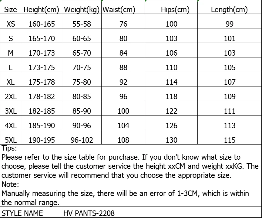 Please carefully distinguish between the size chart of the jacket and pants. Feel free to contact us if you have any questions.