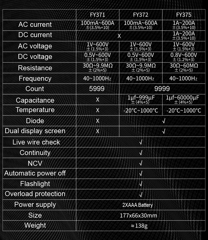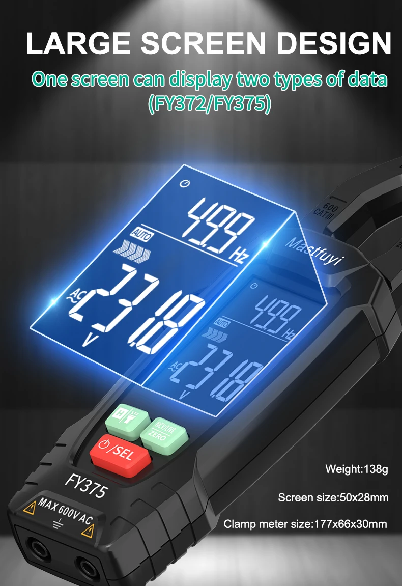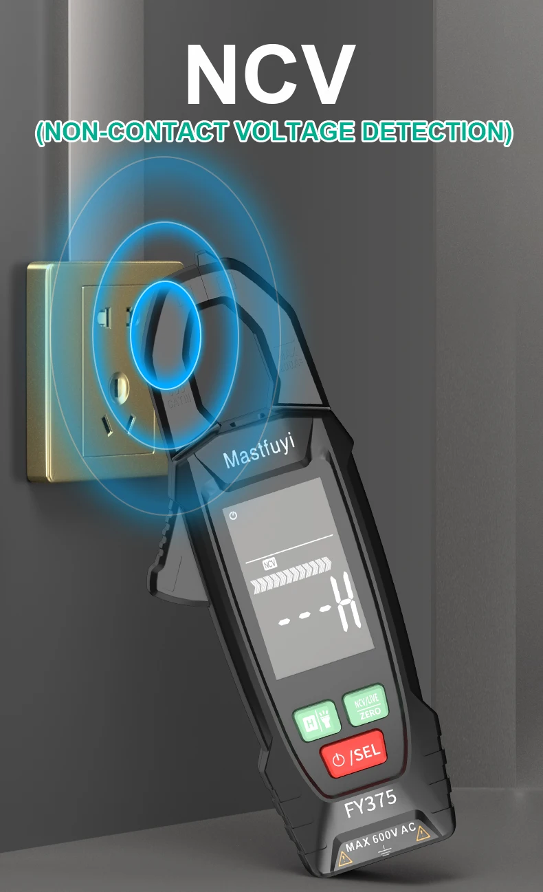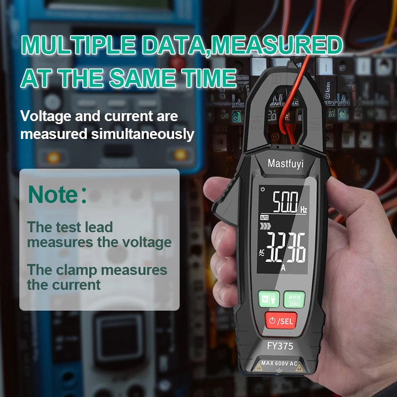 MASTFUYI FY375 AC/DC Digital Clamp Meter Multimeter Pinza Amperimetrica True RMS High Precision Capacitance NCV Ohm Hz Tester