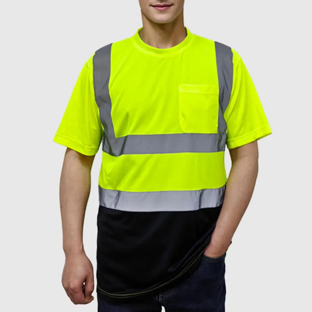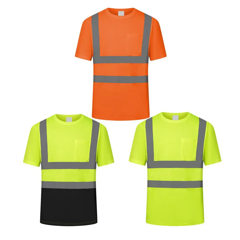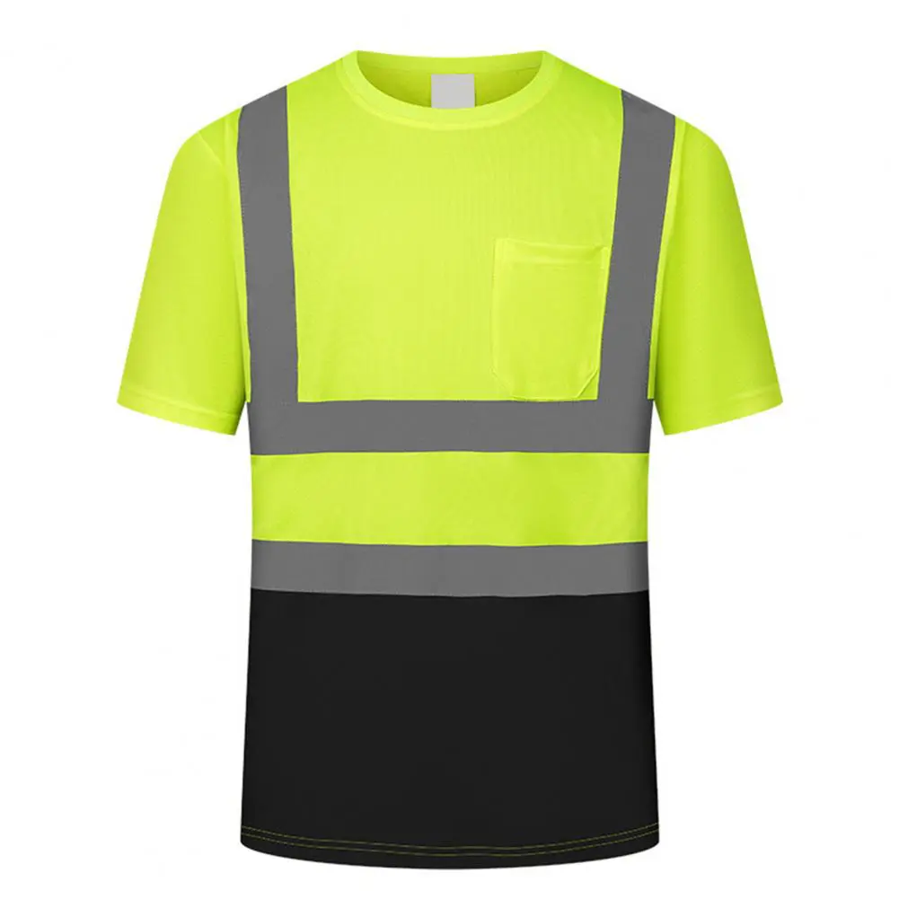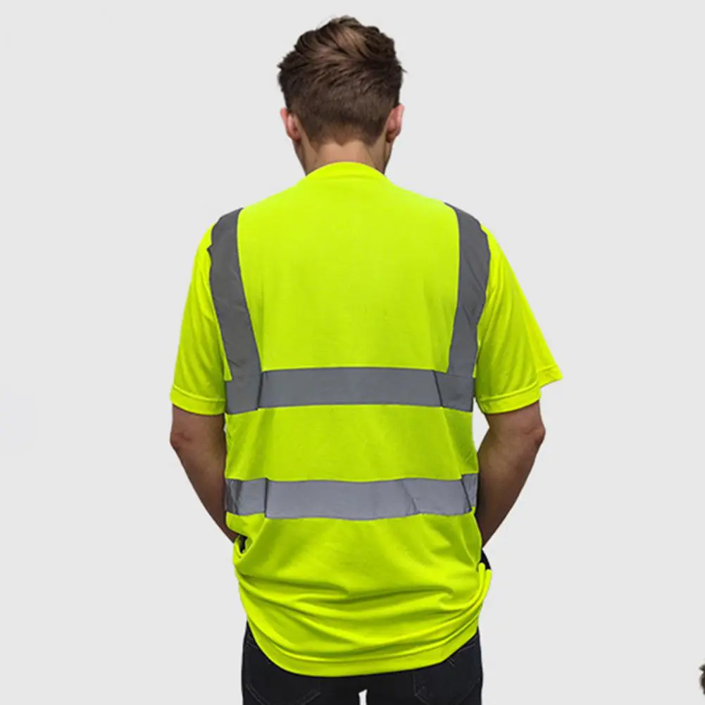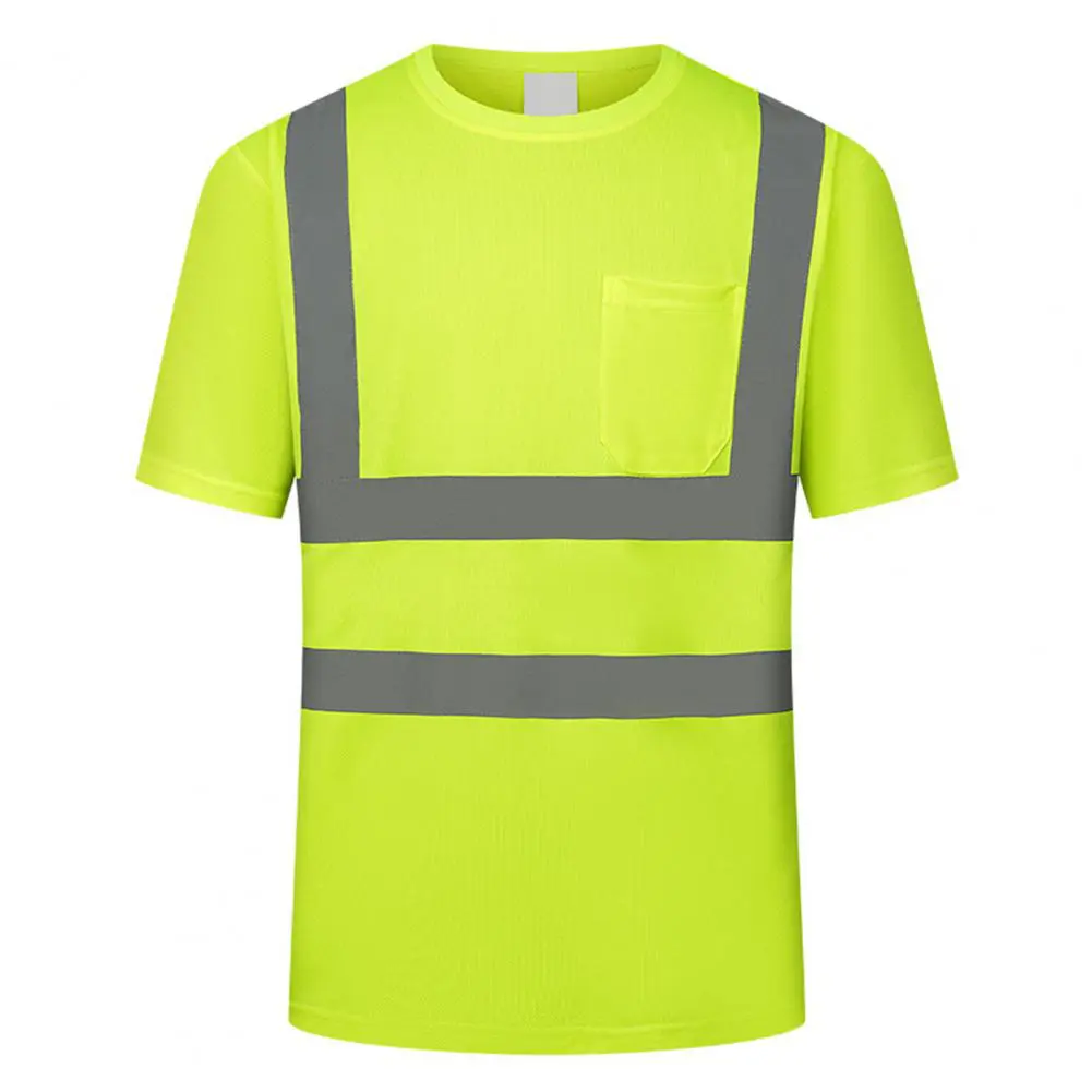 Men Reflective Clothes O-Neck Short Sleeve High Visibility T-Shirt with Mesh Panels Industrial Workwear